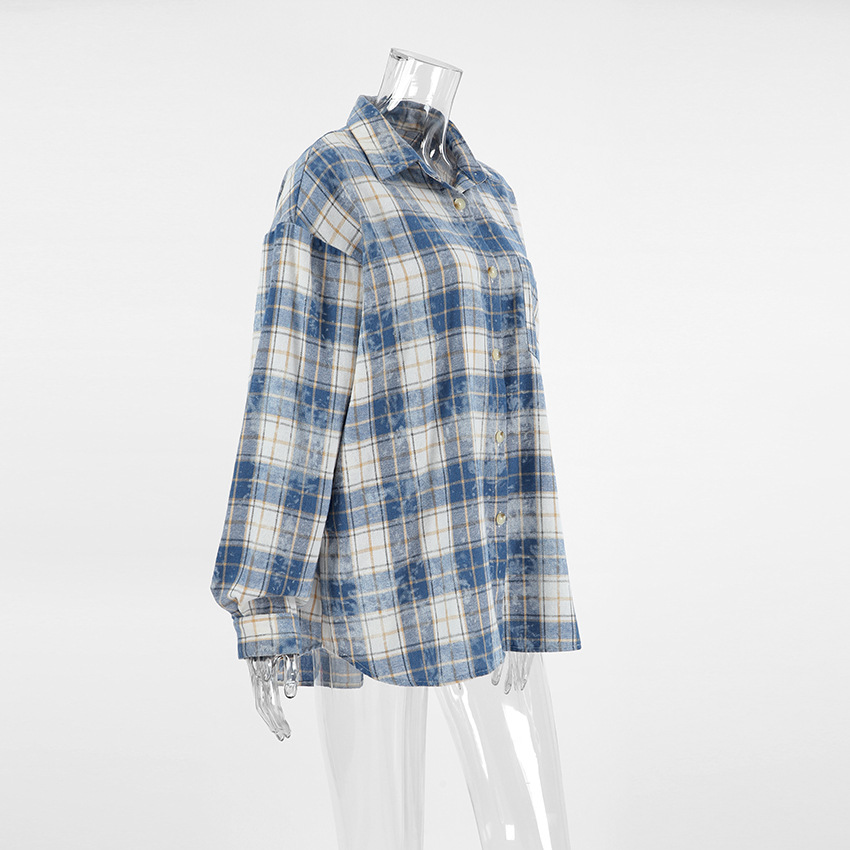 American retro washed old plaid shirt women's oversize polyester cotton shirt street style women's clothing