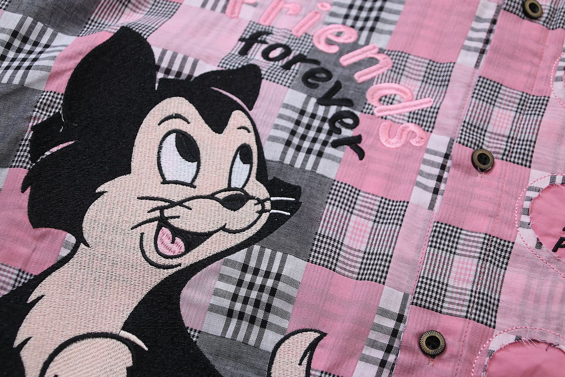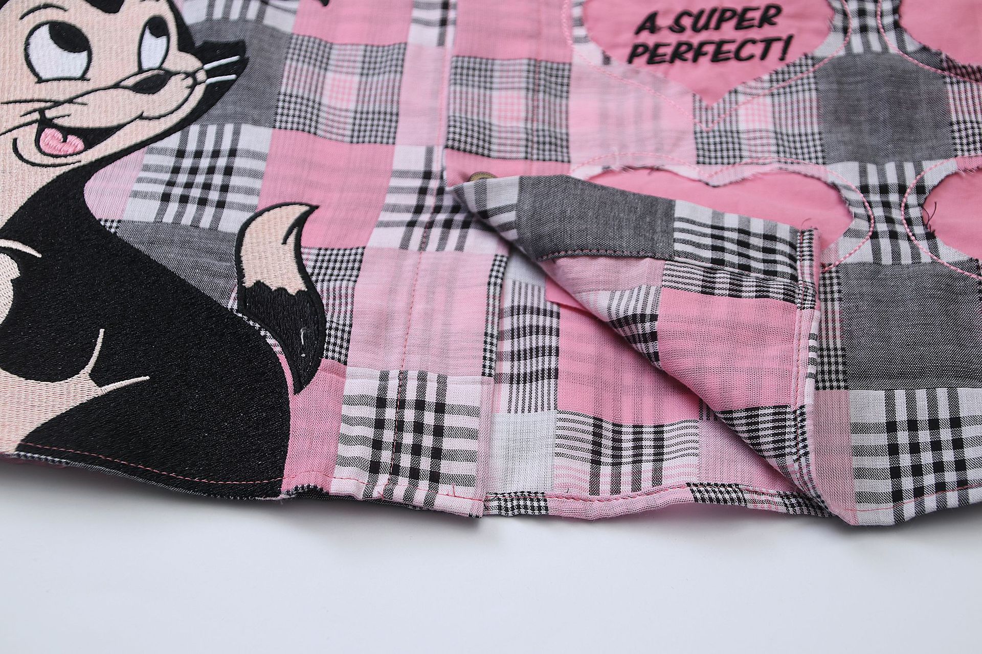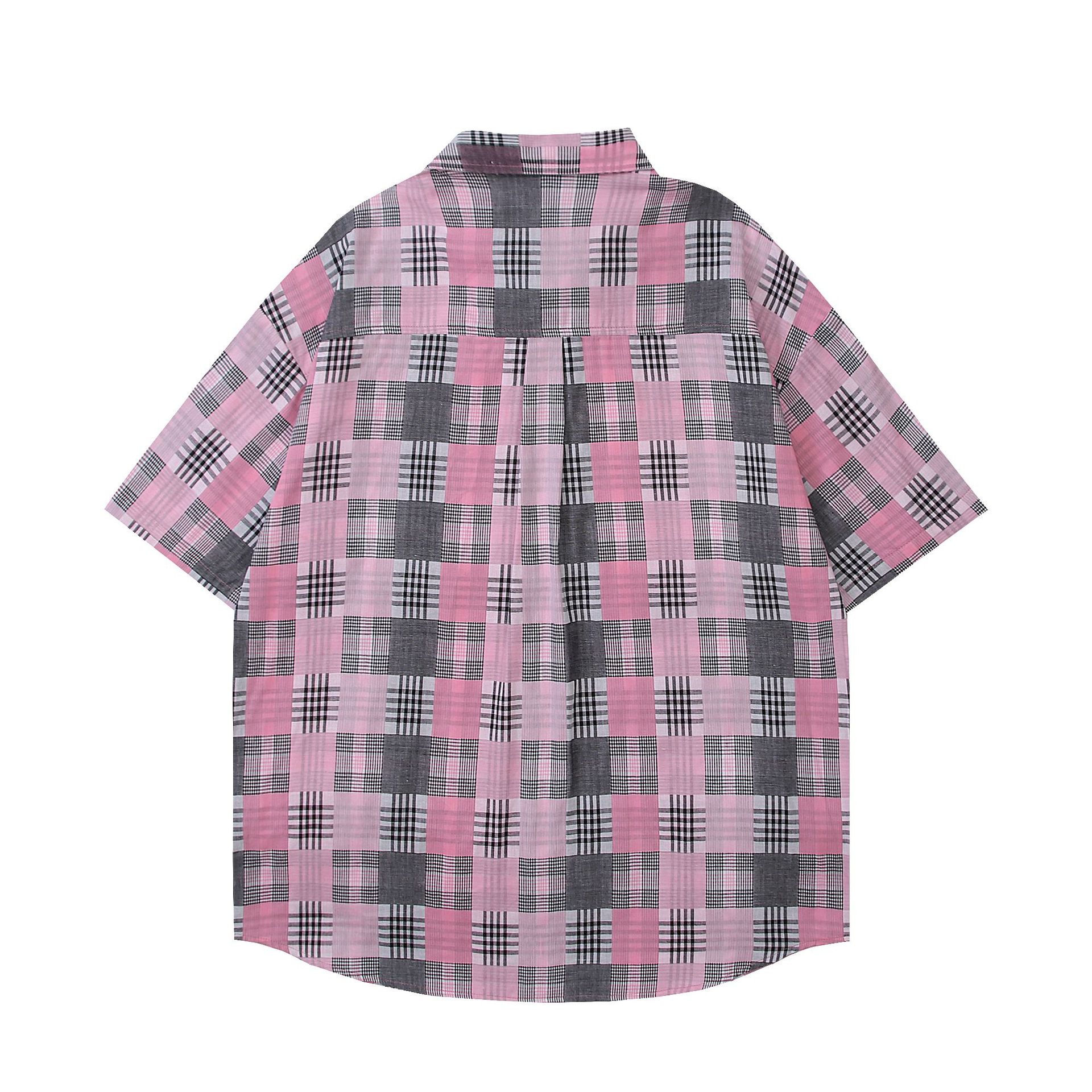 Cartoon embroidered plaid color matching short-sleeved shirt loose casual versatile shirt