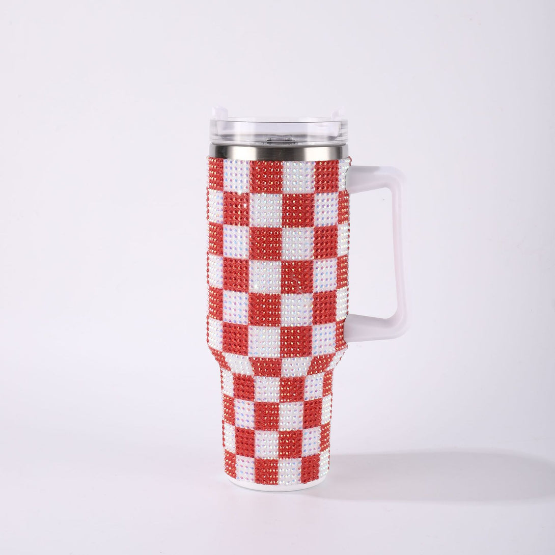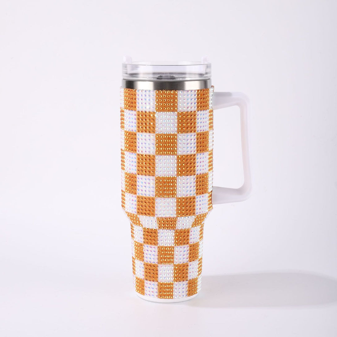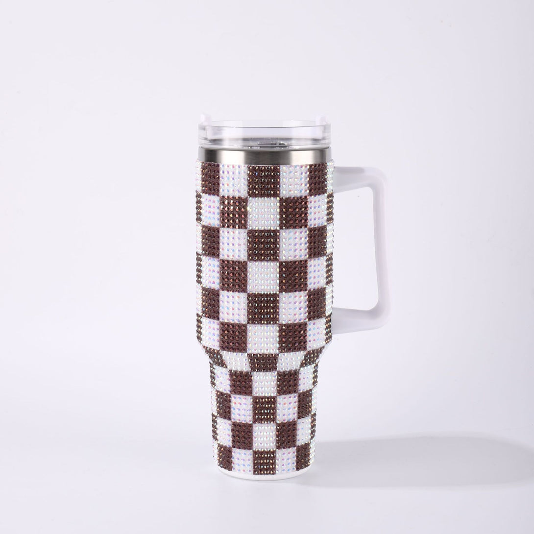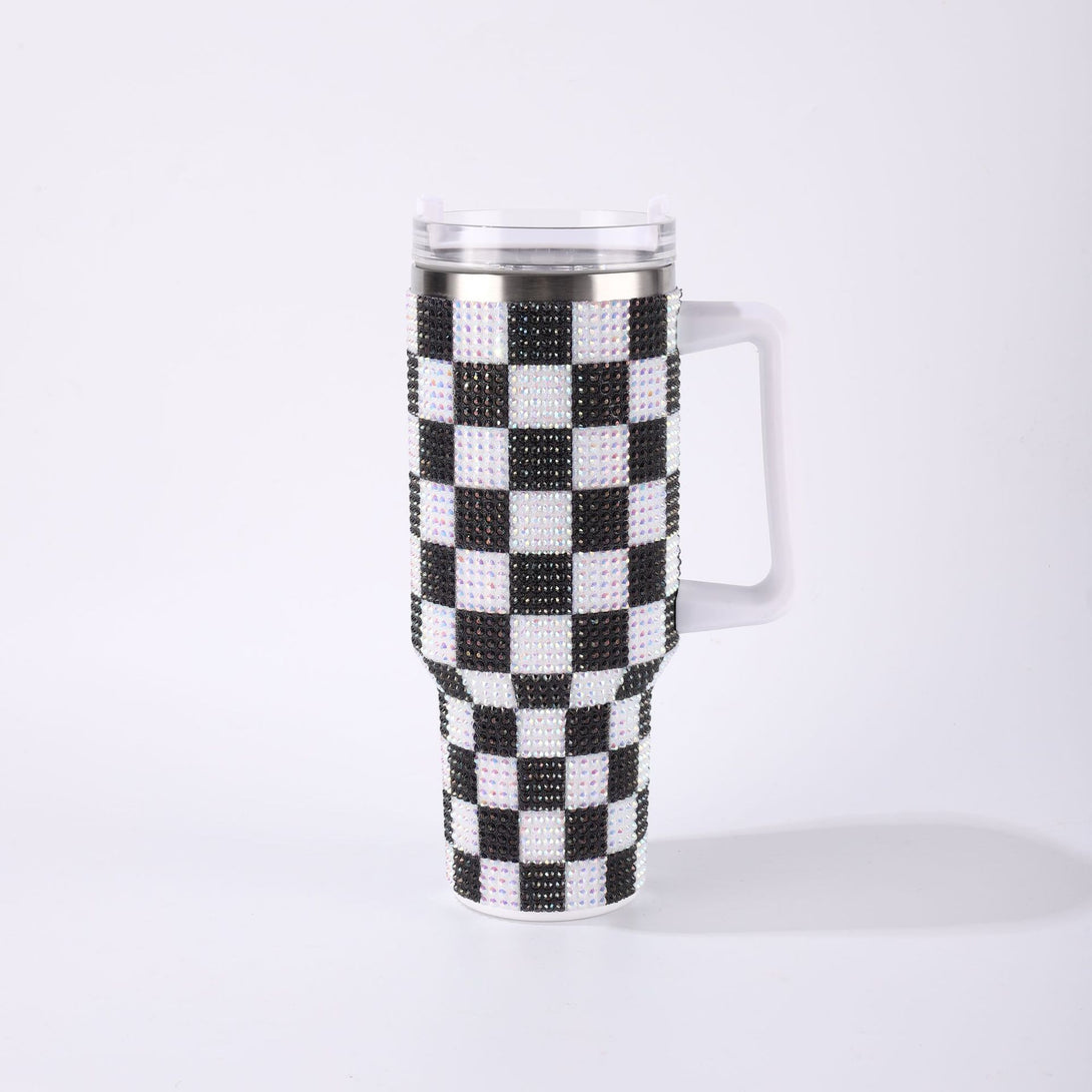 Chessboard sticker drill generation 40oz large-capacity Bingba cup 304 stainless steel tumbler Car cup