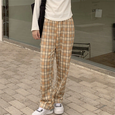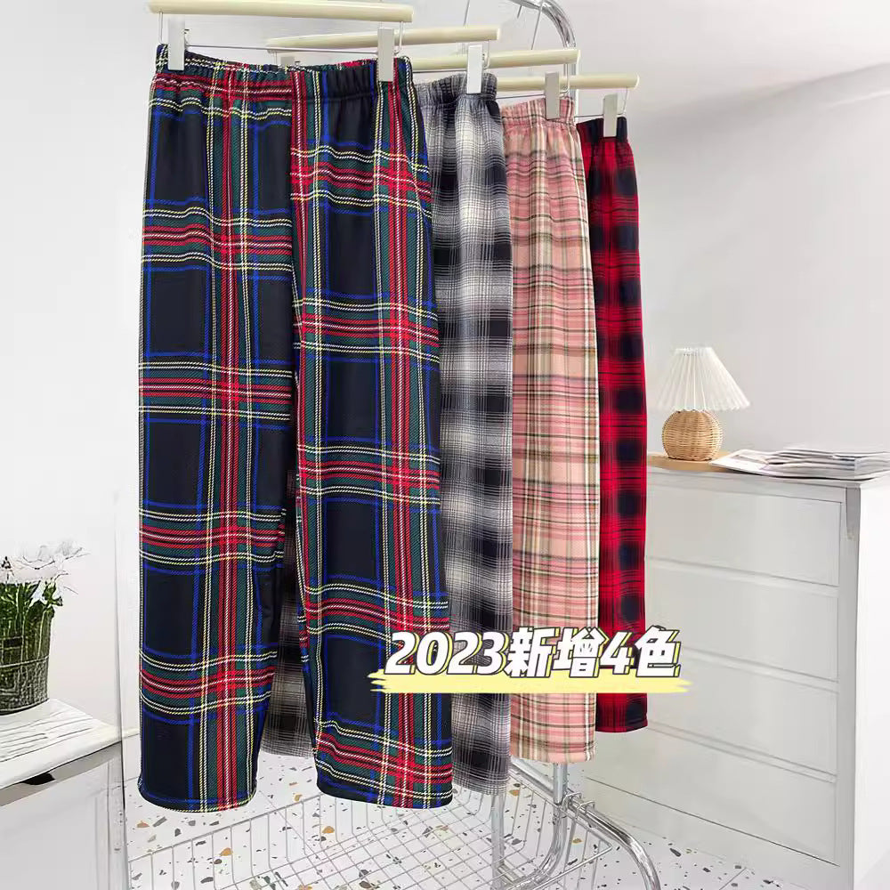 Cross-border foreign trade fleece plaid wide-leg pants women high waist loose and thin winter thickened lamb wool casual thermal pants