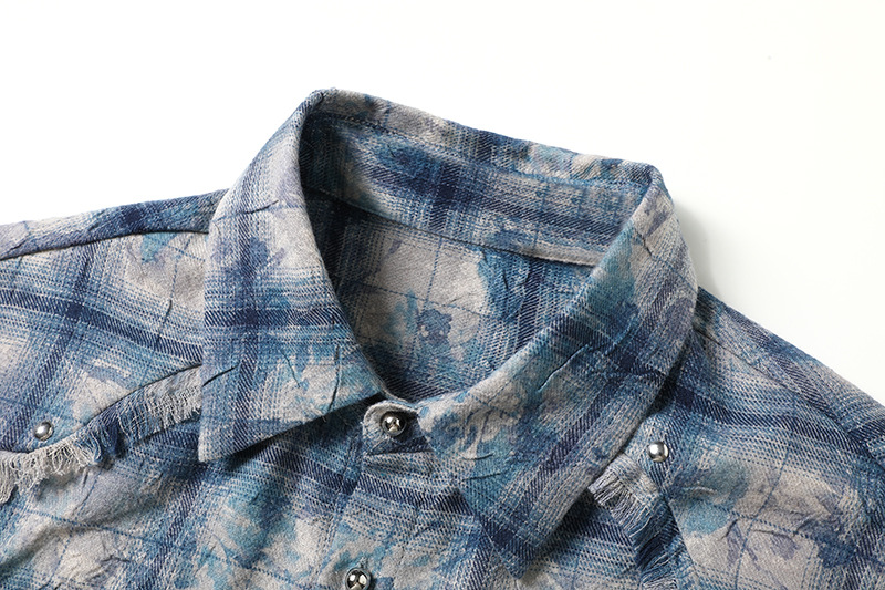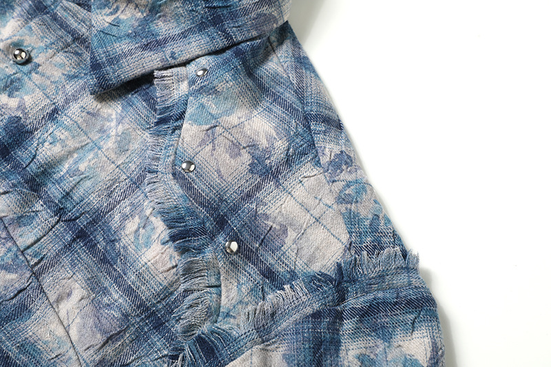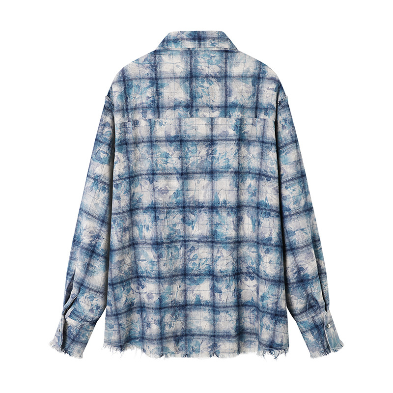 Design tie-dye fringed plaid long-sleeved shirt women's new casual