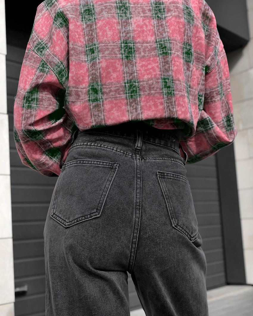 Fashion classic retro 2024 spring and summer washed plaid loose lapel shirt European and American versatile pink shirt wholesale