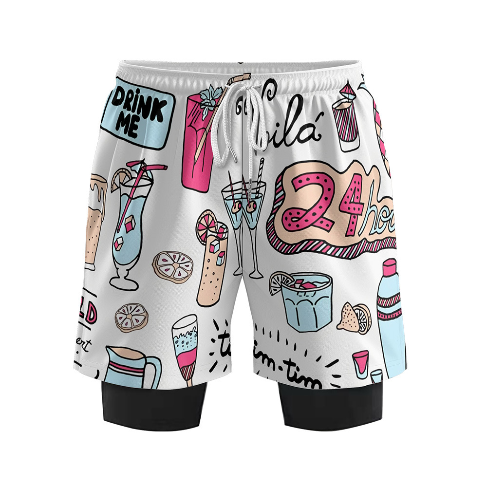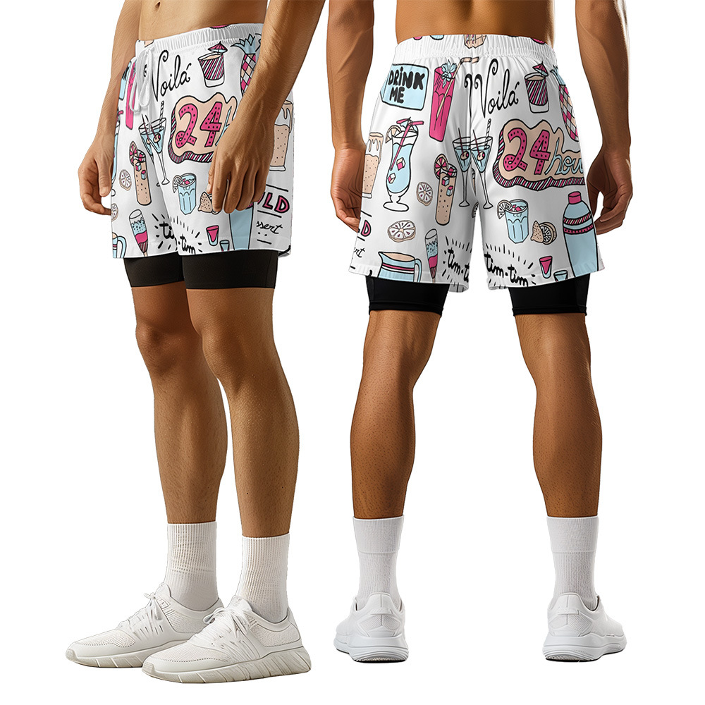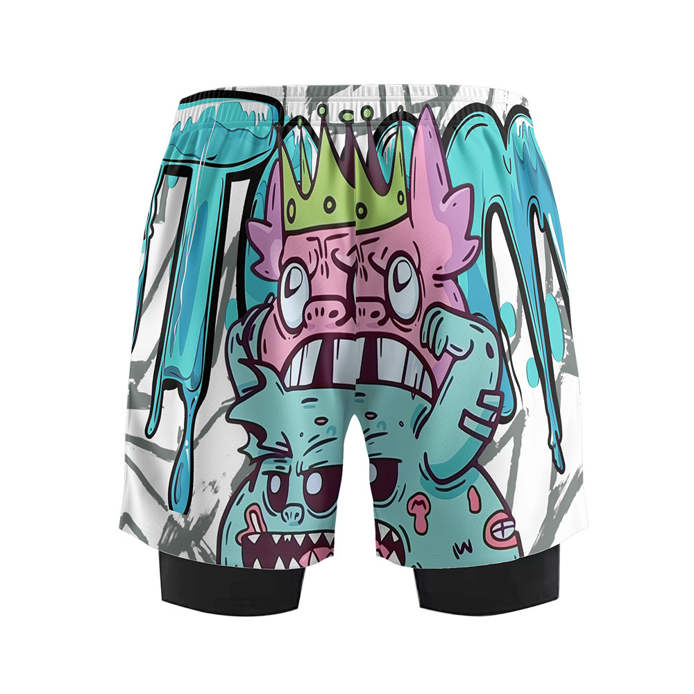 Fashion new summer ice cream shorts refreshing casual fake two-piece shorts loose men's and women's same casual pants
