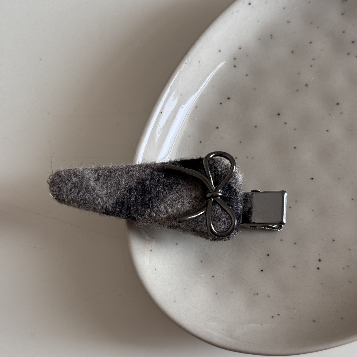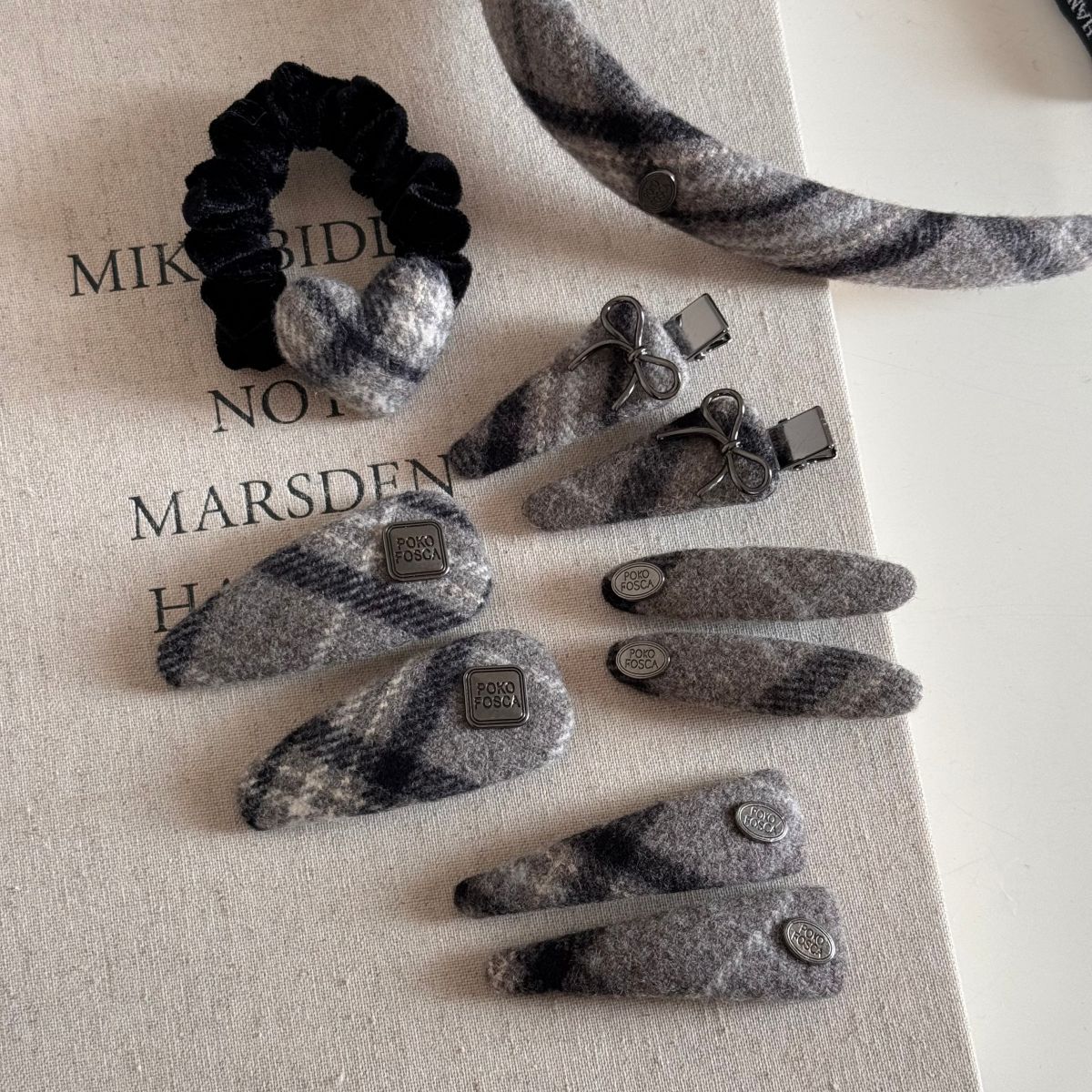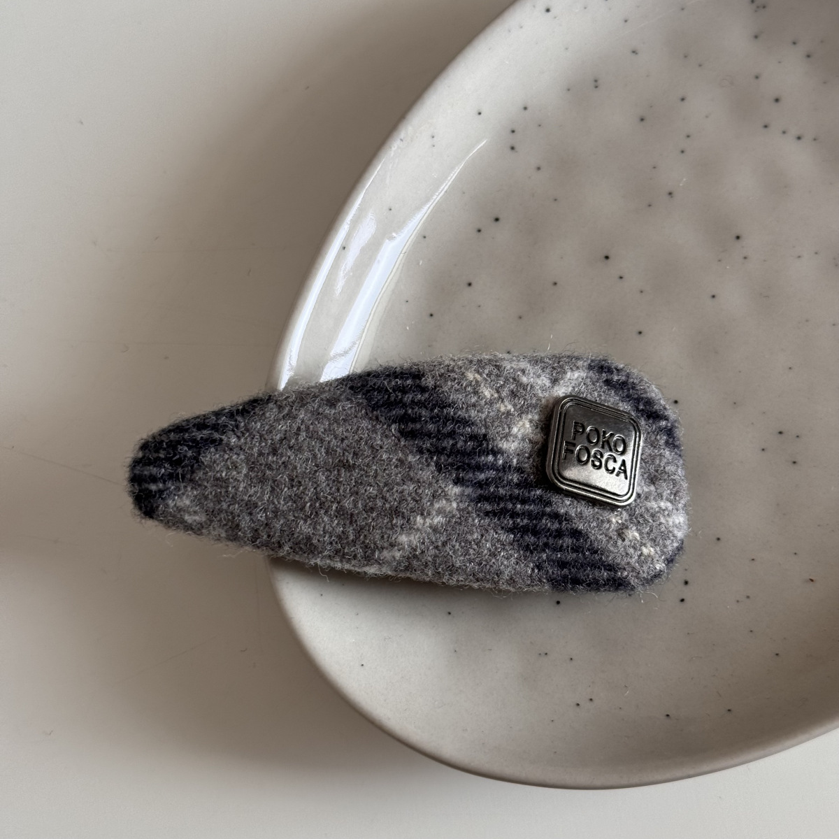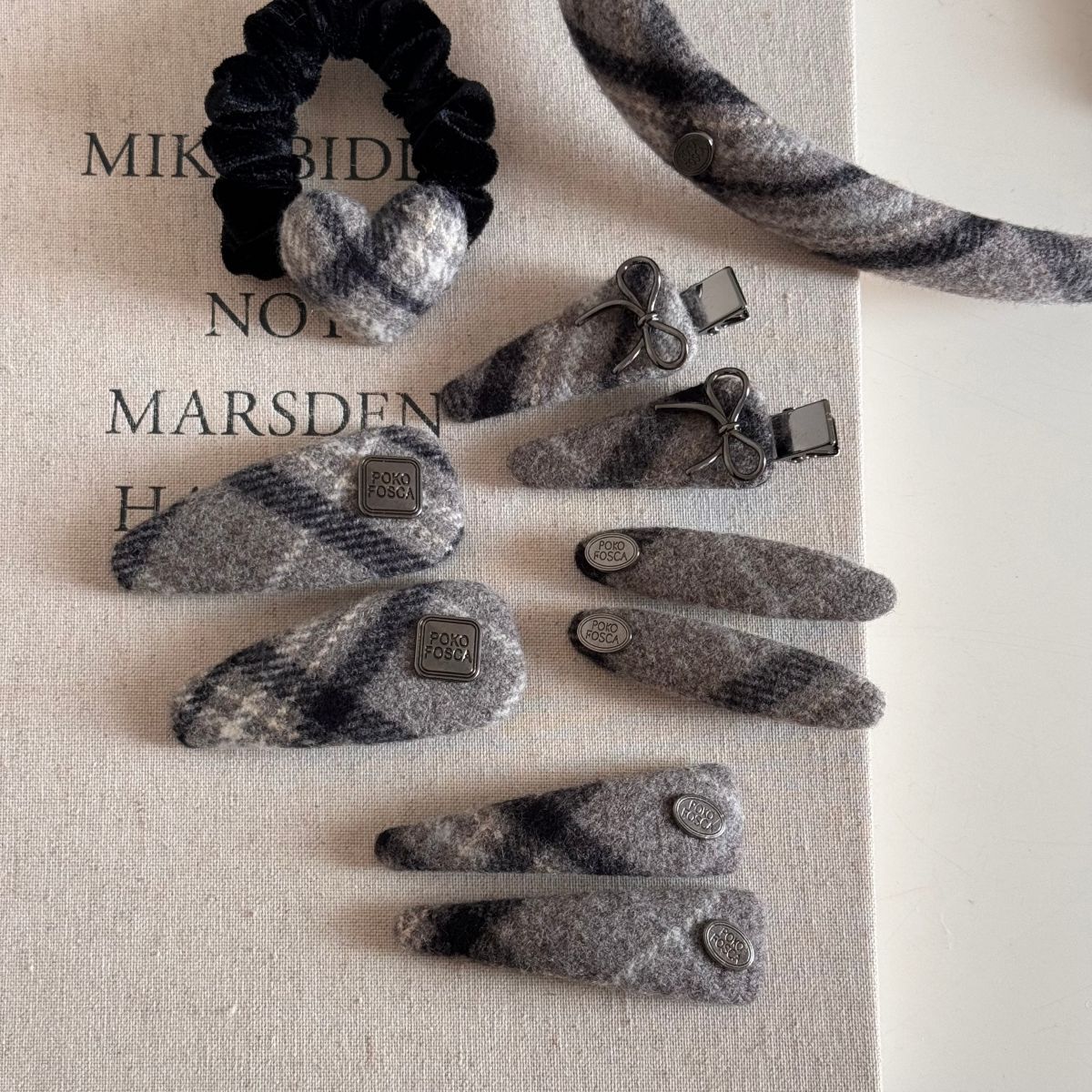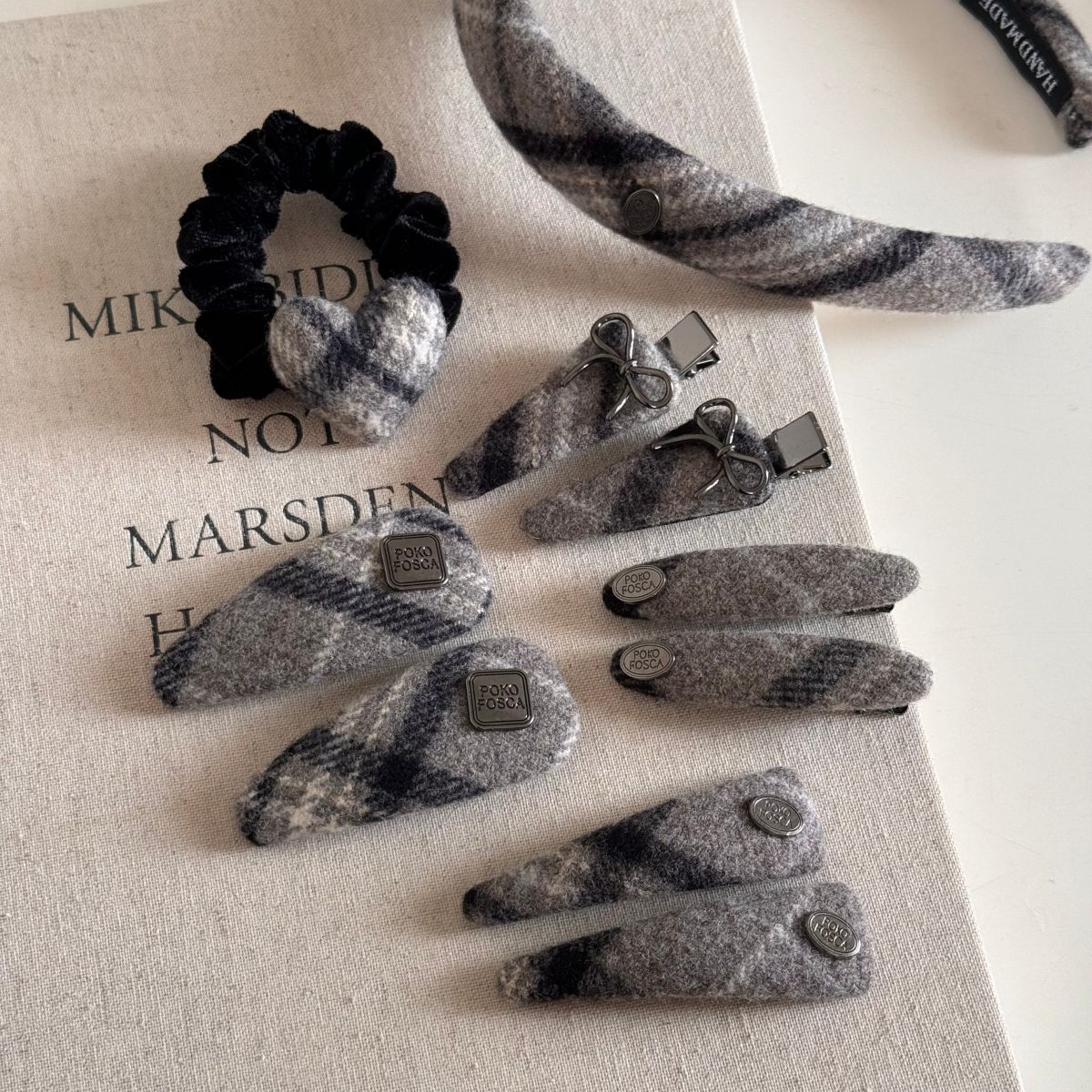 Gray plaid fabric hairpin simple retro silver piece accessories side clip bangs clip hairpin