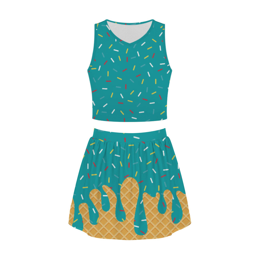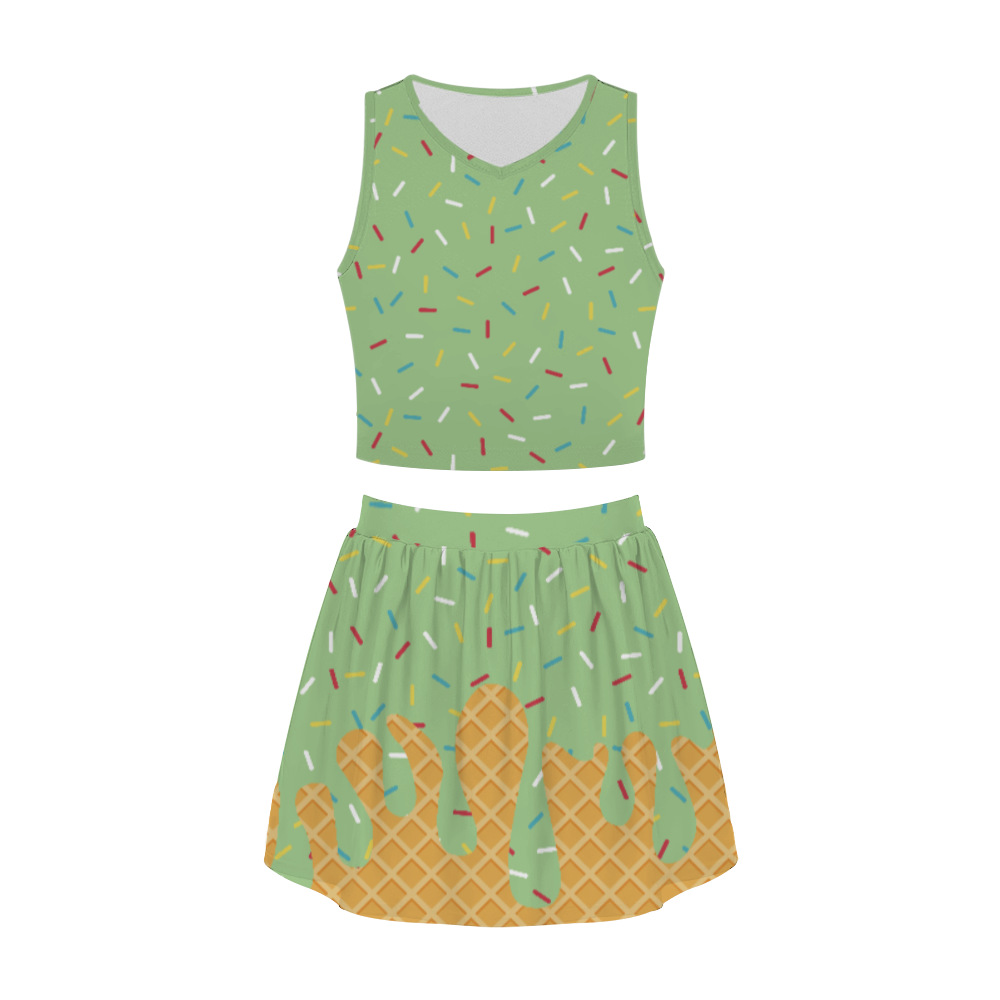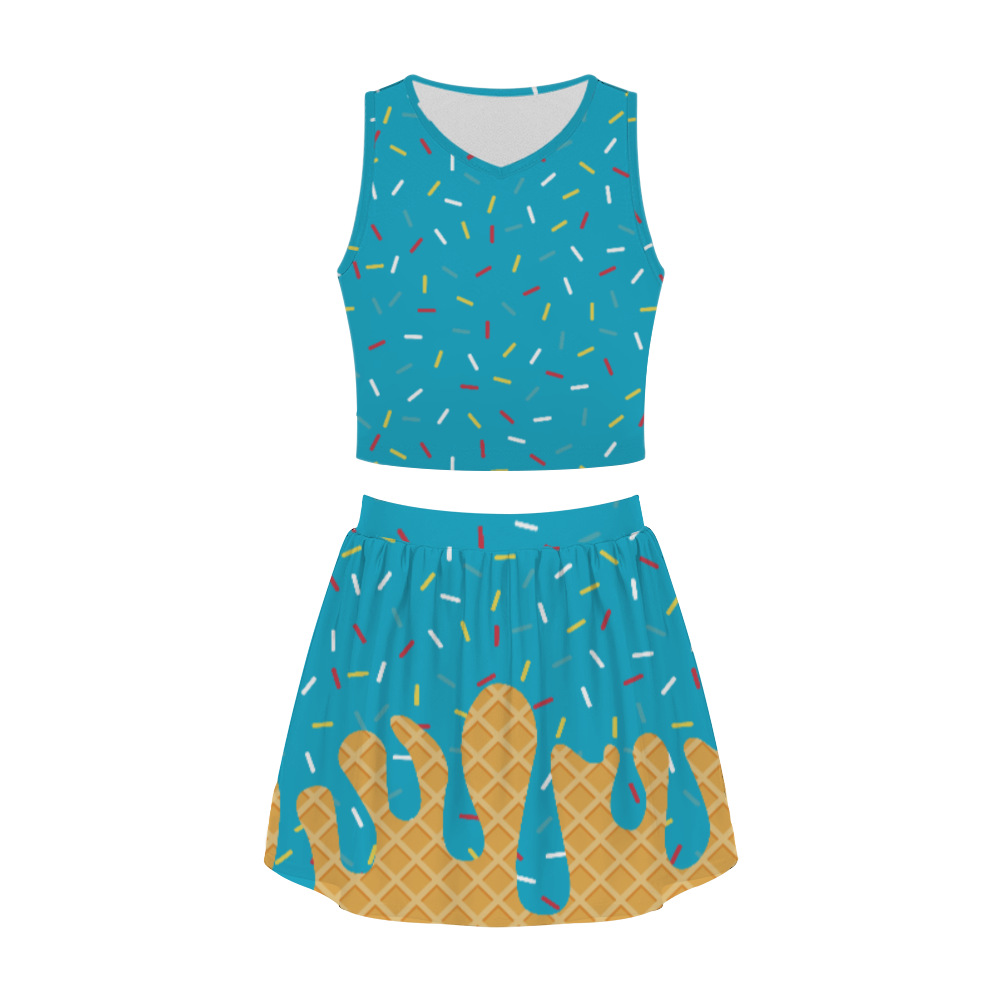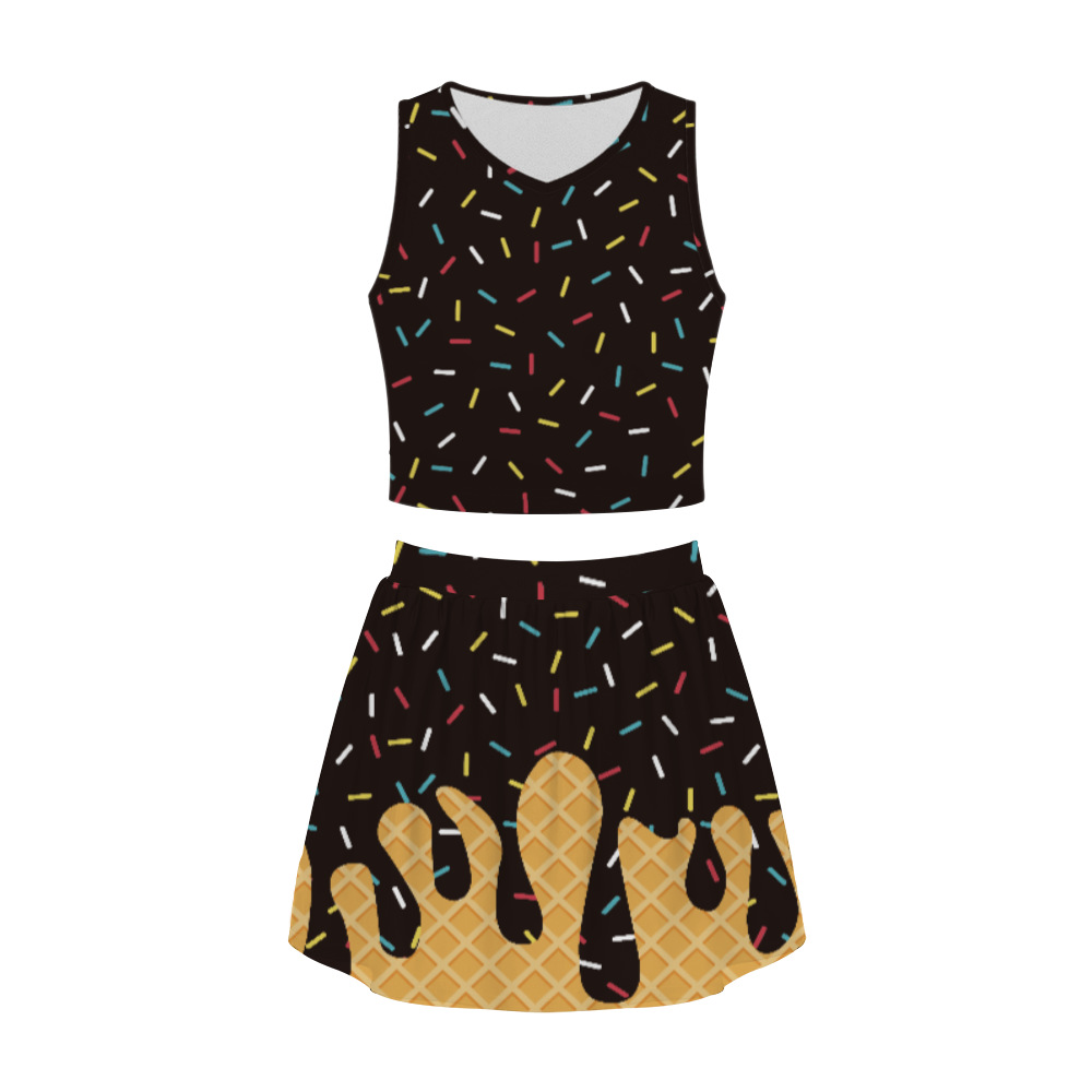 Ladies Short Skirt Set Summer Skirt Printing Fashion Trend Casual Crew Neck Personalized Set