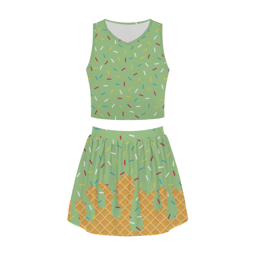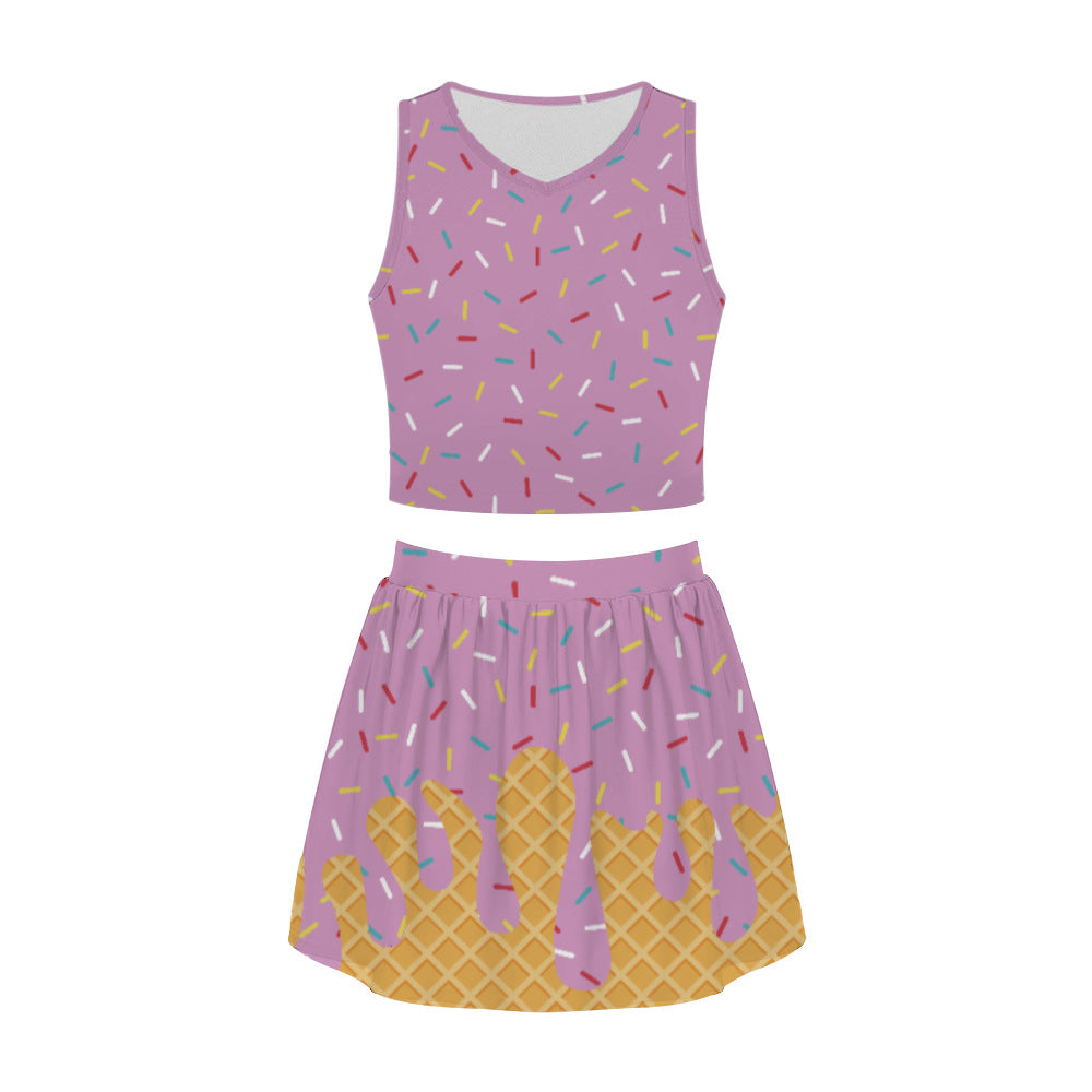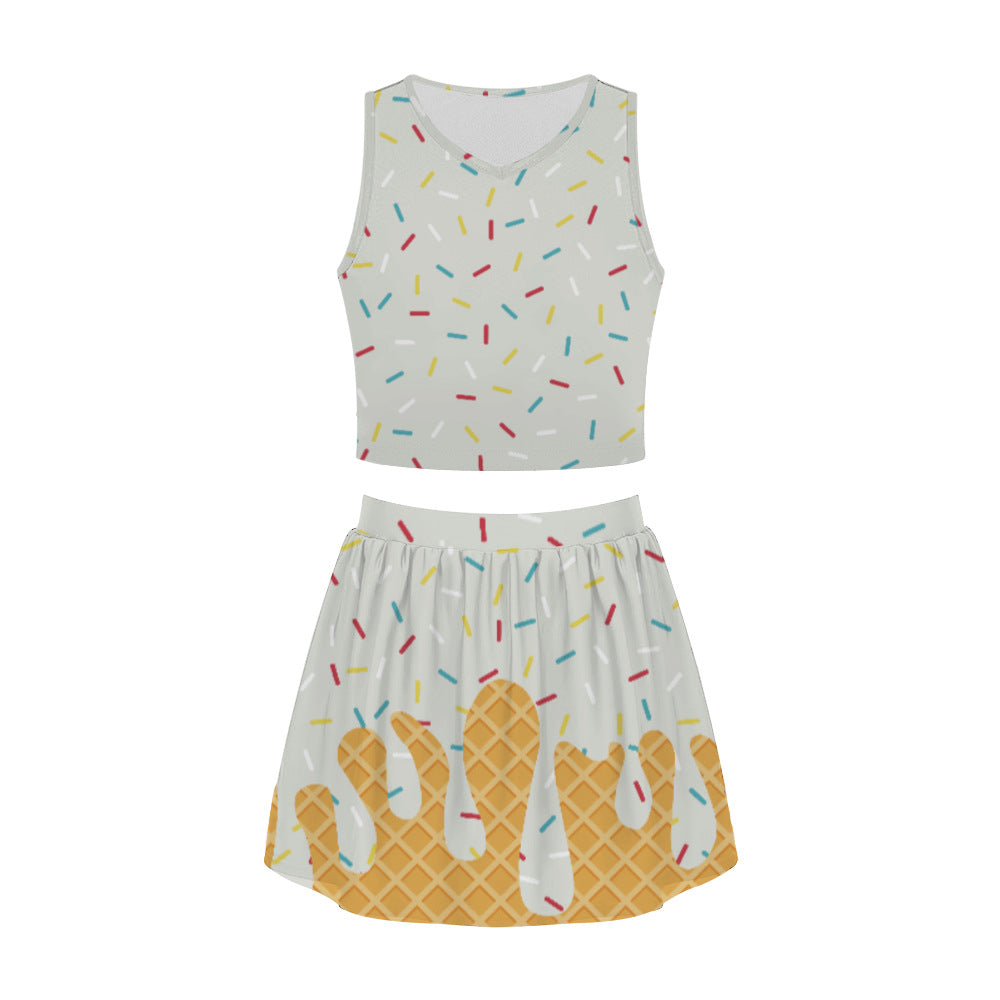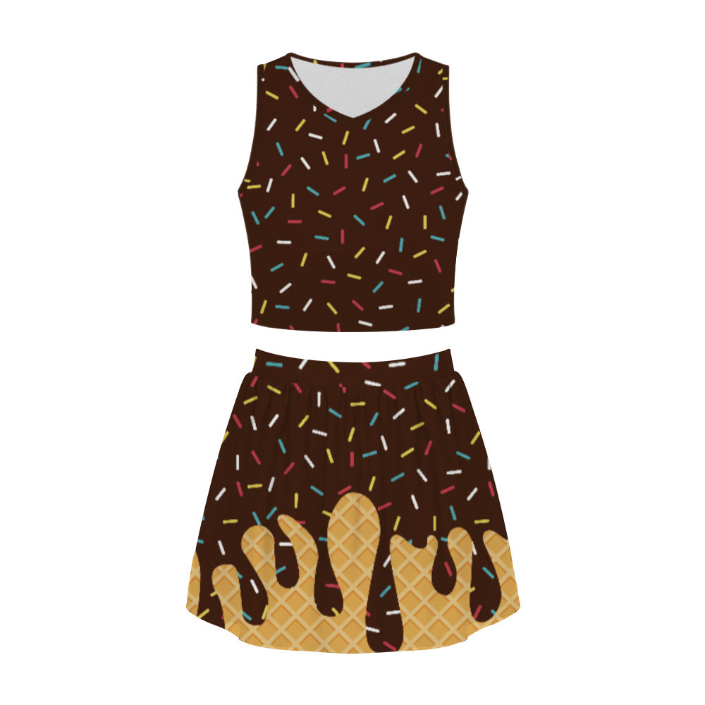 Ladies Short Skirt Set Summer Skirt Printing Fashion Trend Casual Crew Neck Personalized Set