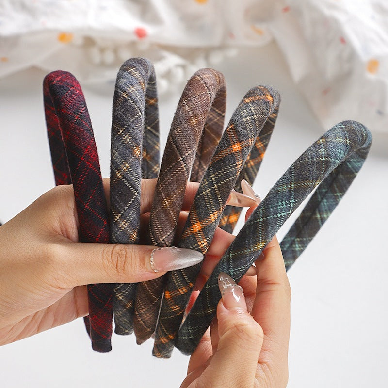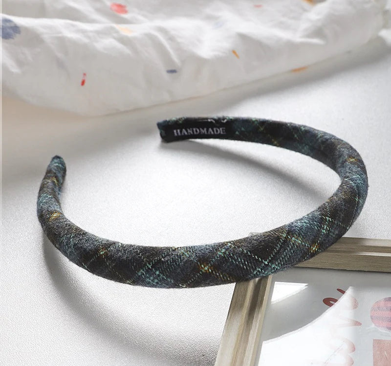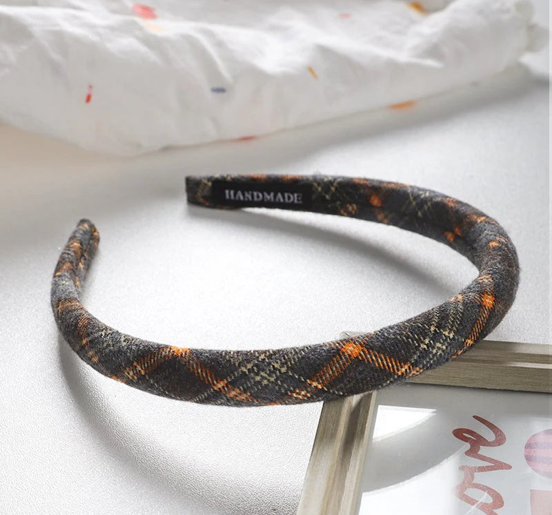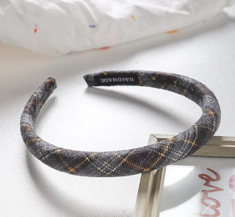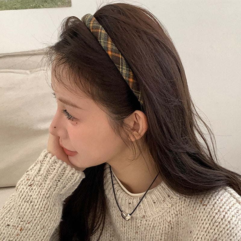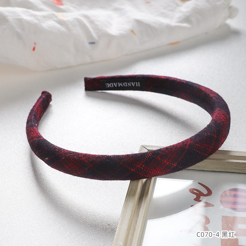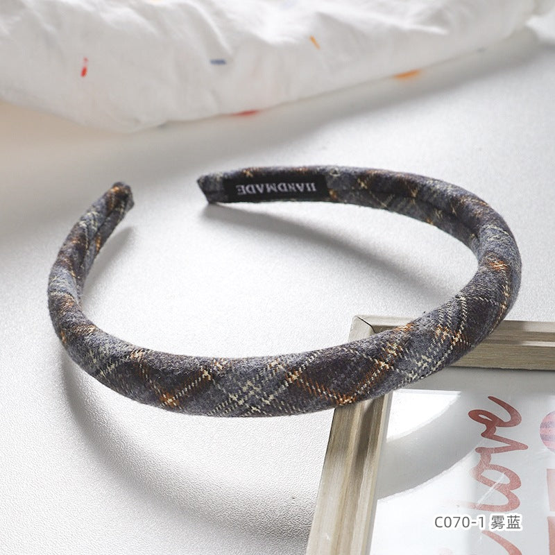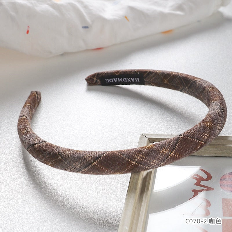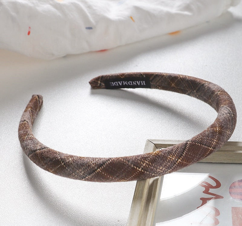 Maillard premium headband Korean college style plaid hair accessories pressure hairpin three-dimensional cotton filling high skull top thin headband