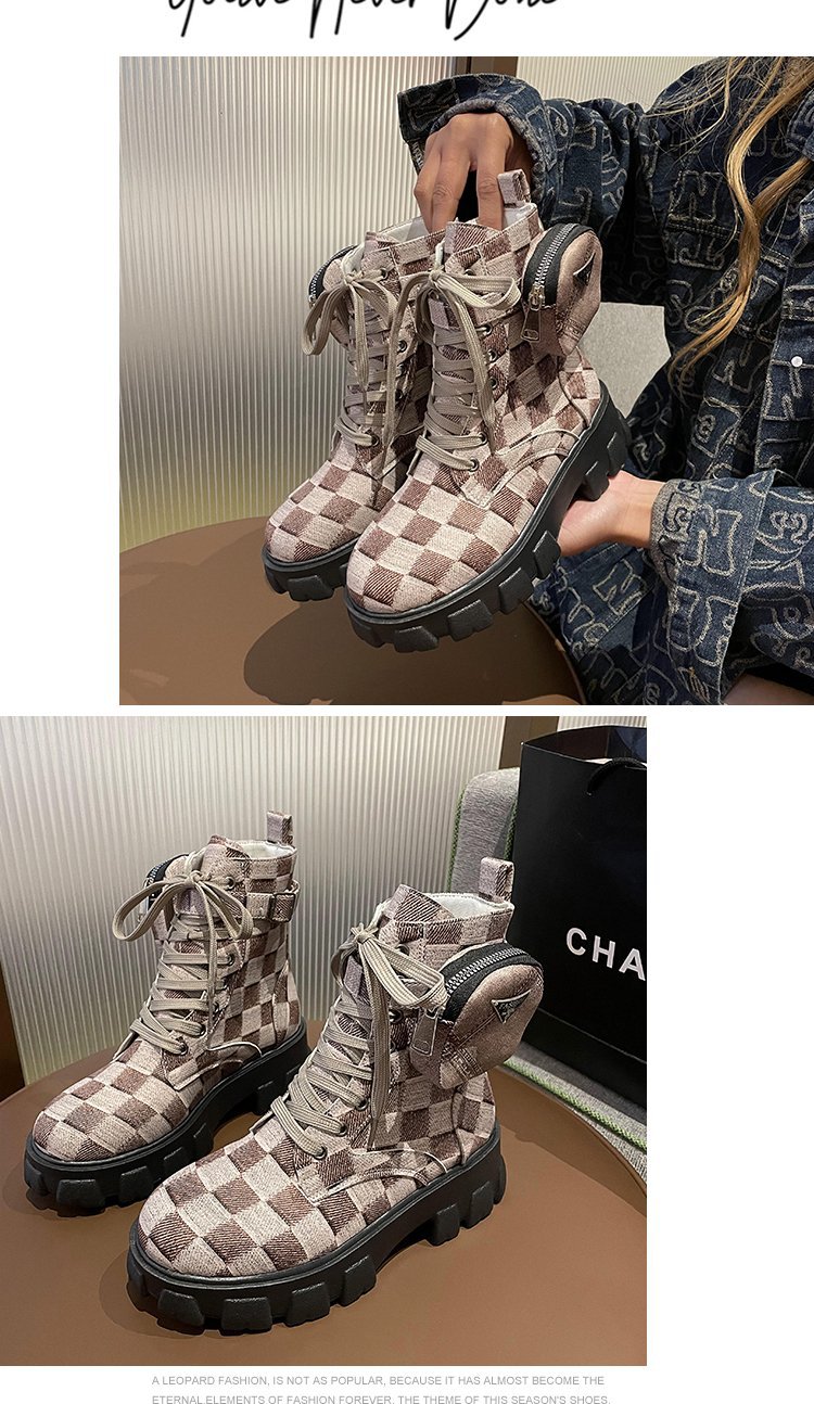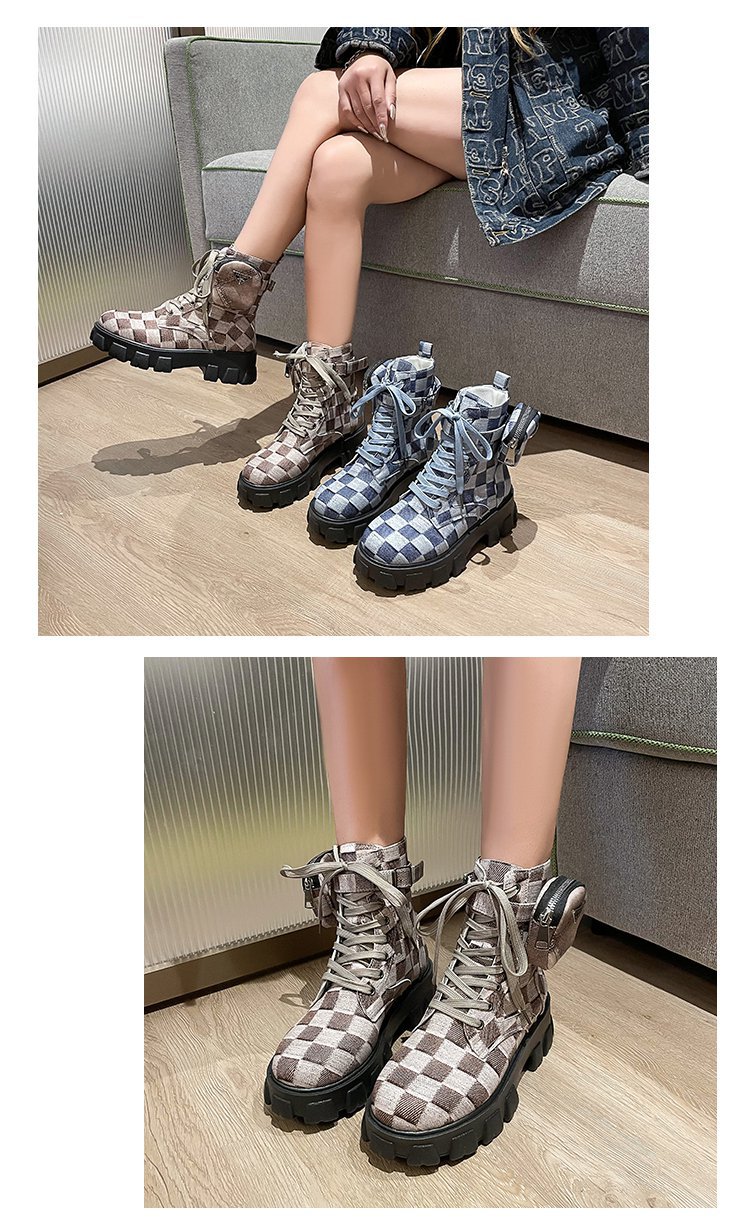 New cowboy boots Skinny plaid medium tube thick sole heightened side zipper Martin boots women