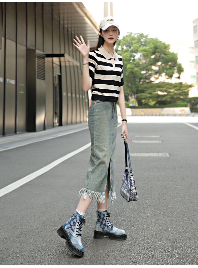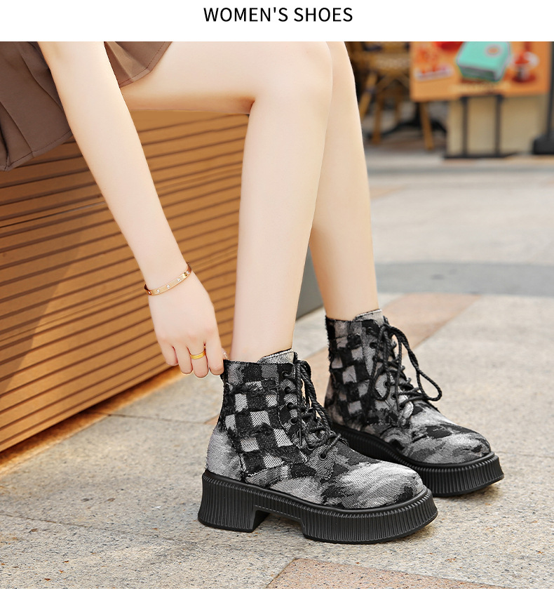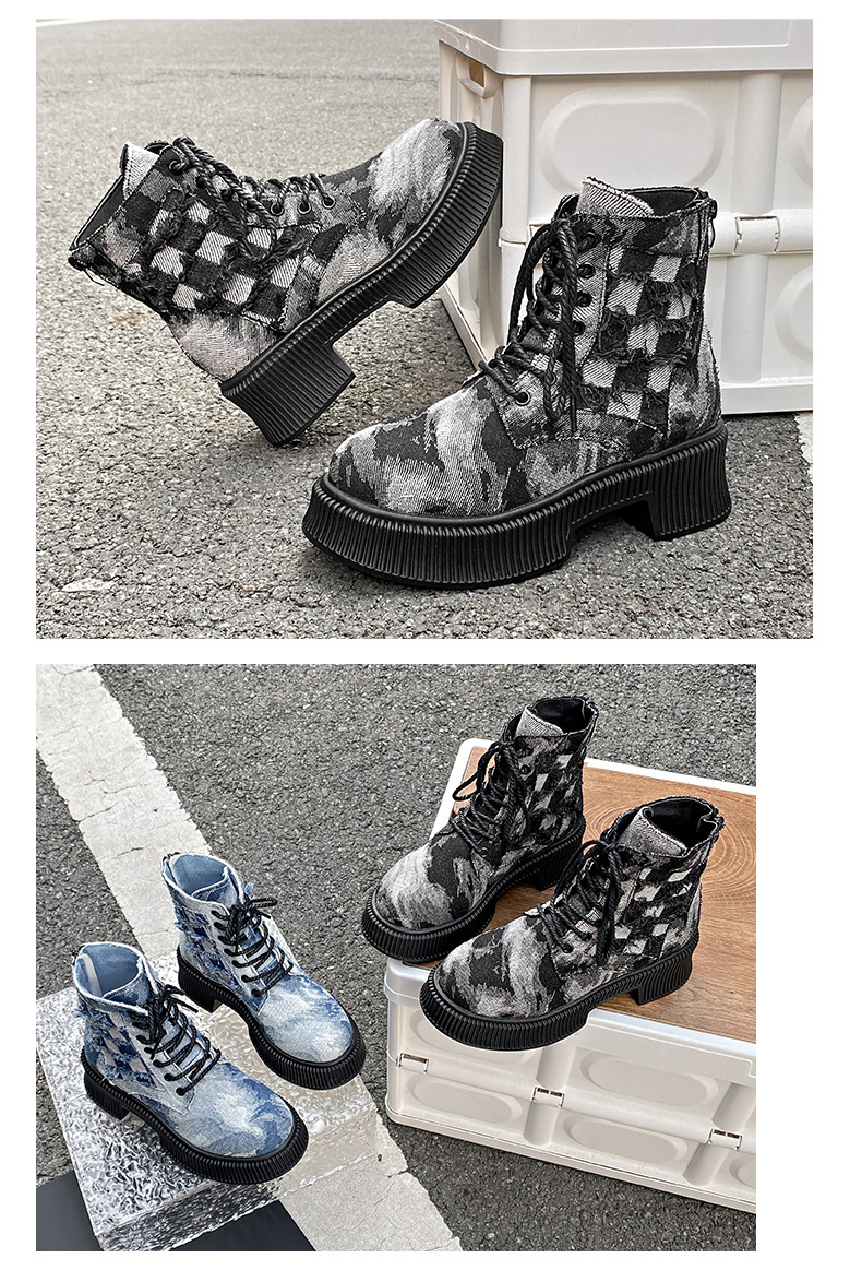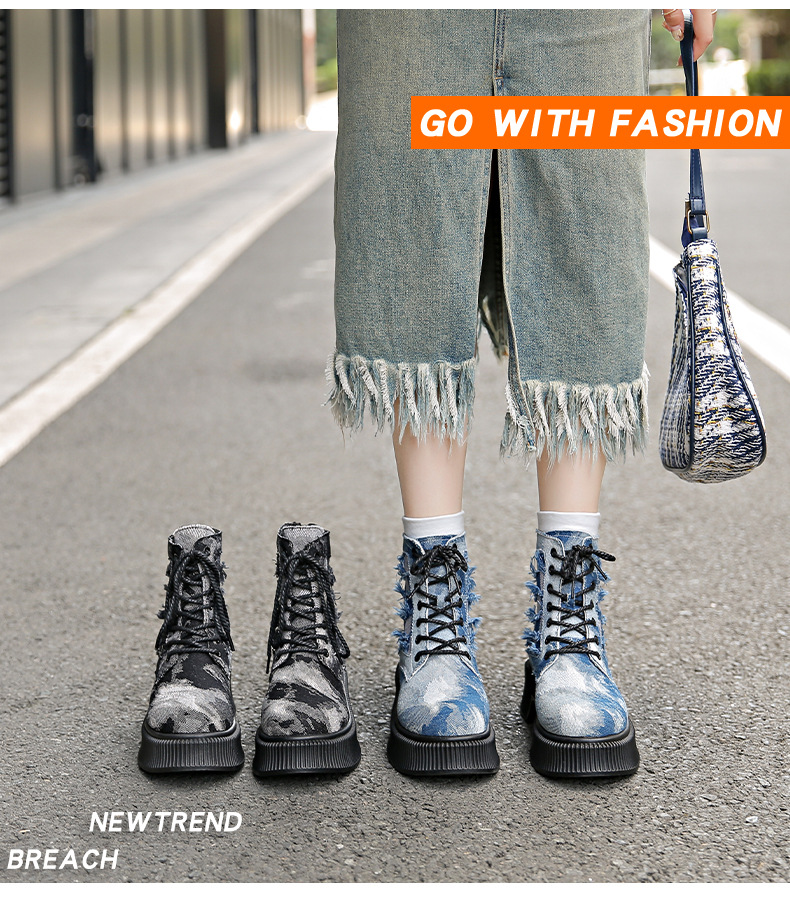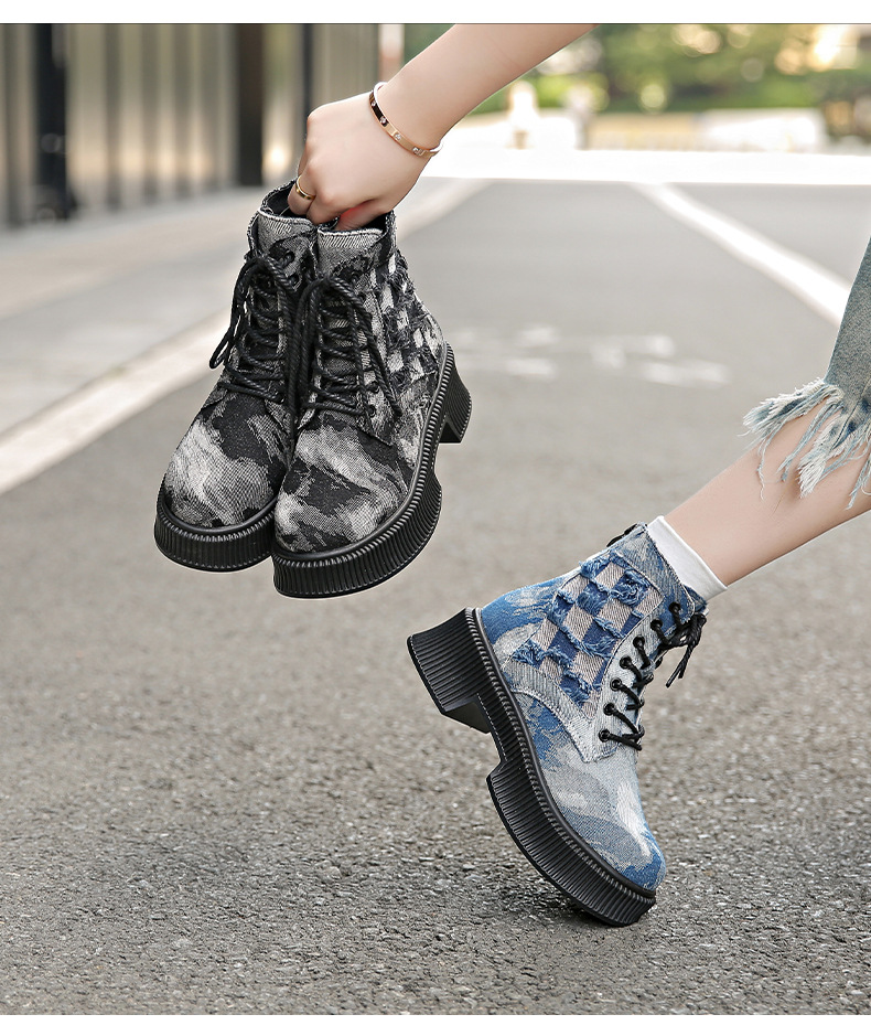 New denim Martin boots women retro locomotive platform short boots