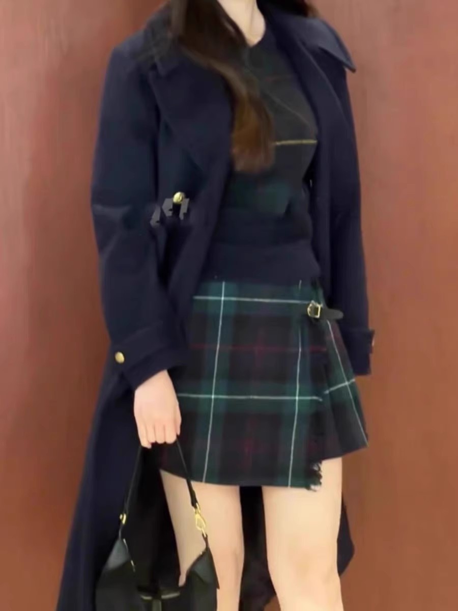 Niche early spring new plaid irregular wrap-up pleated skirt women