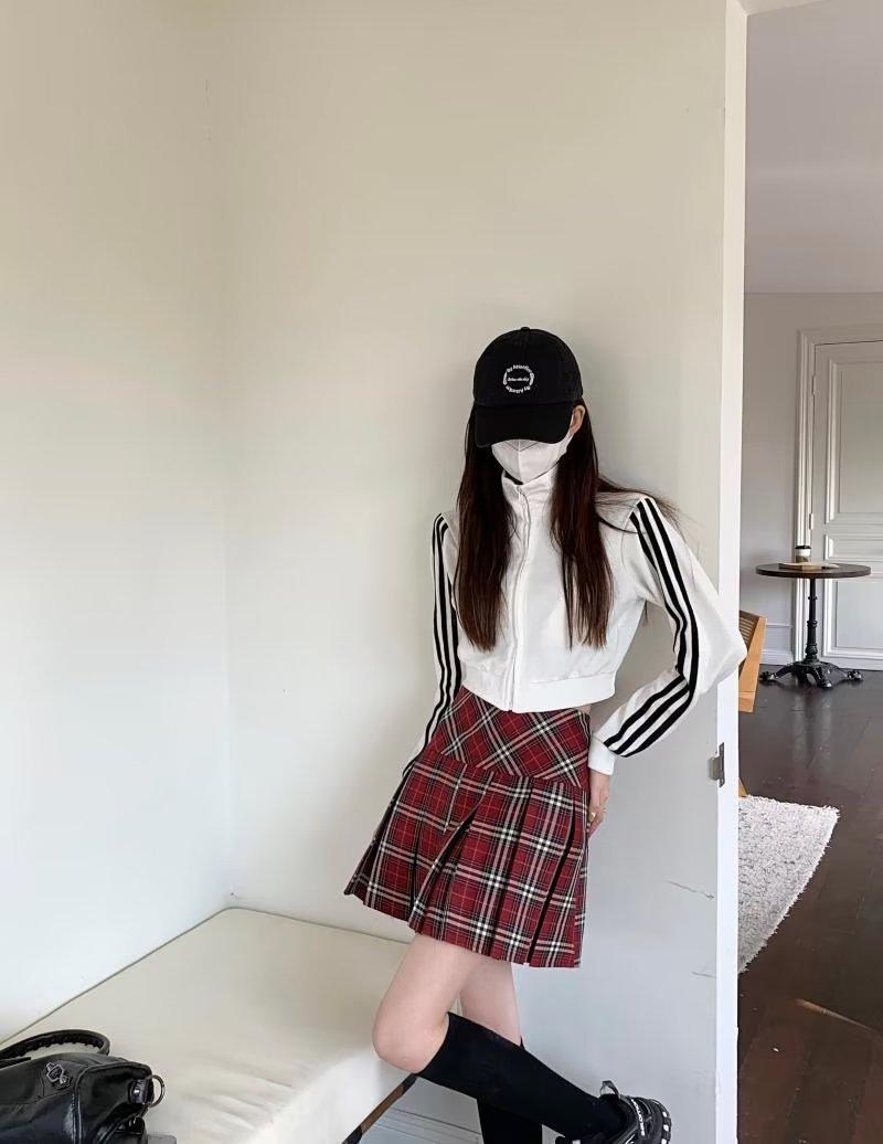 Red plaid pleated skirt female summer student a-shaped skirt high waist slim short skirt college style fashion skirt