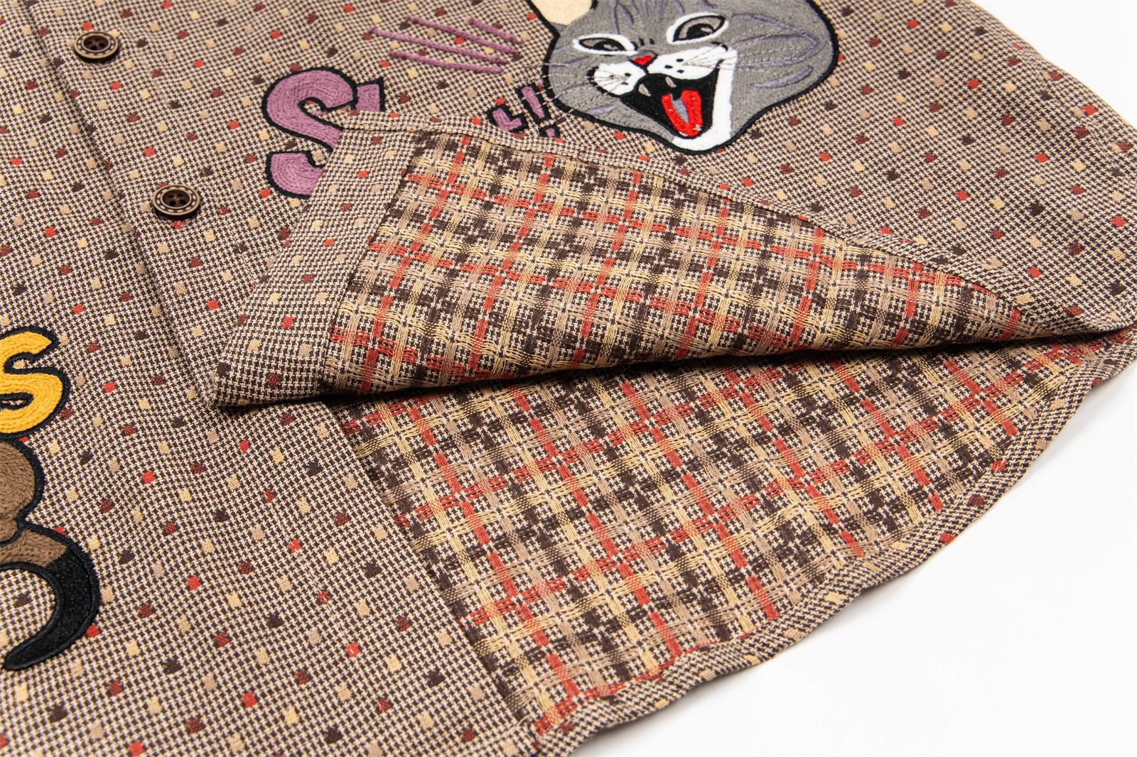 Retro cute kitten embroidery color matching loose and versatile summer new short-sleeved shirts for men and women