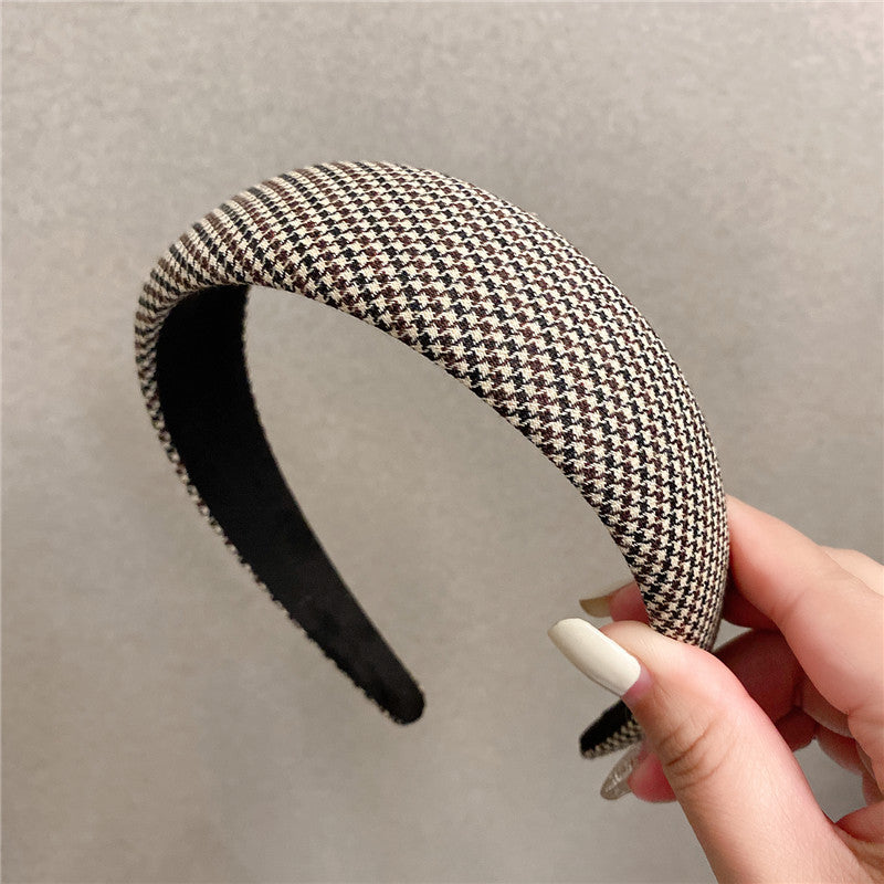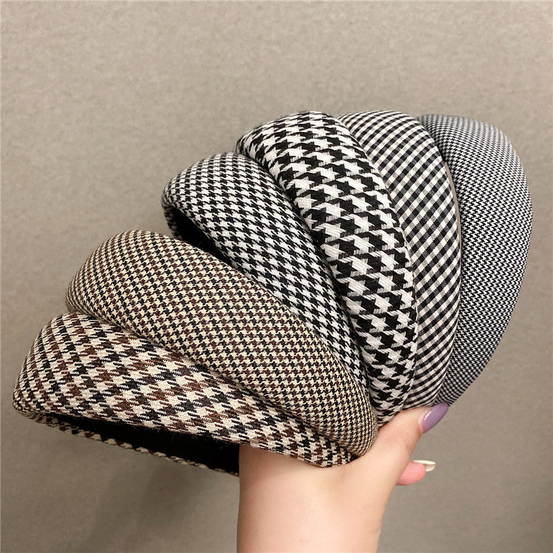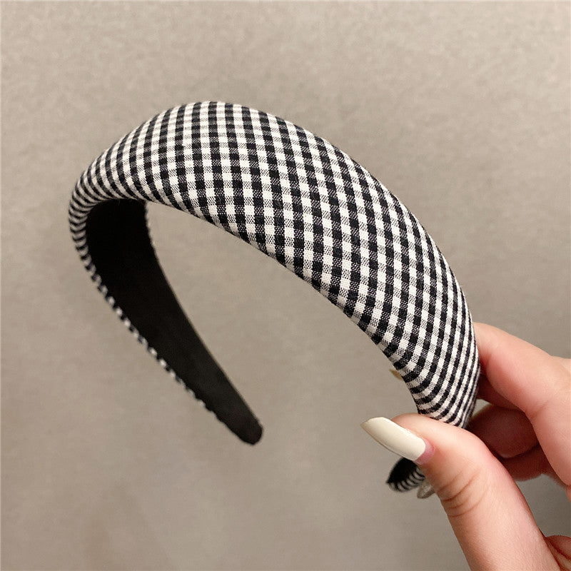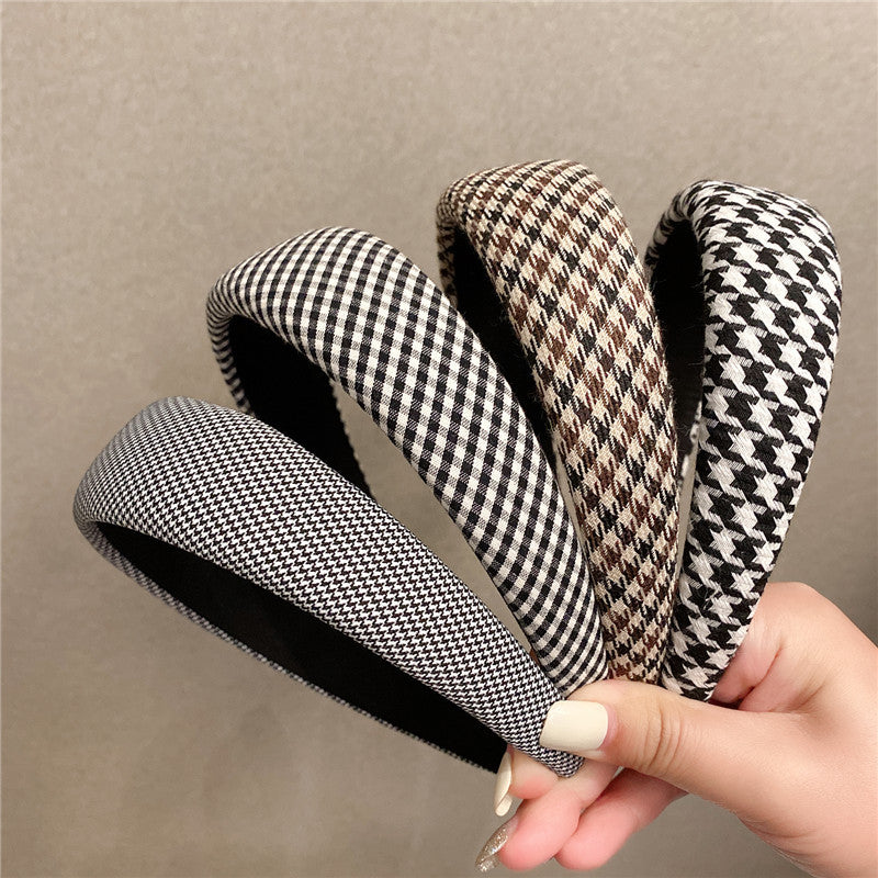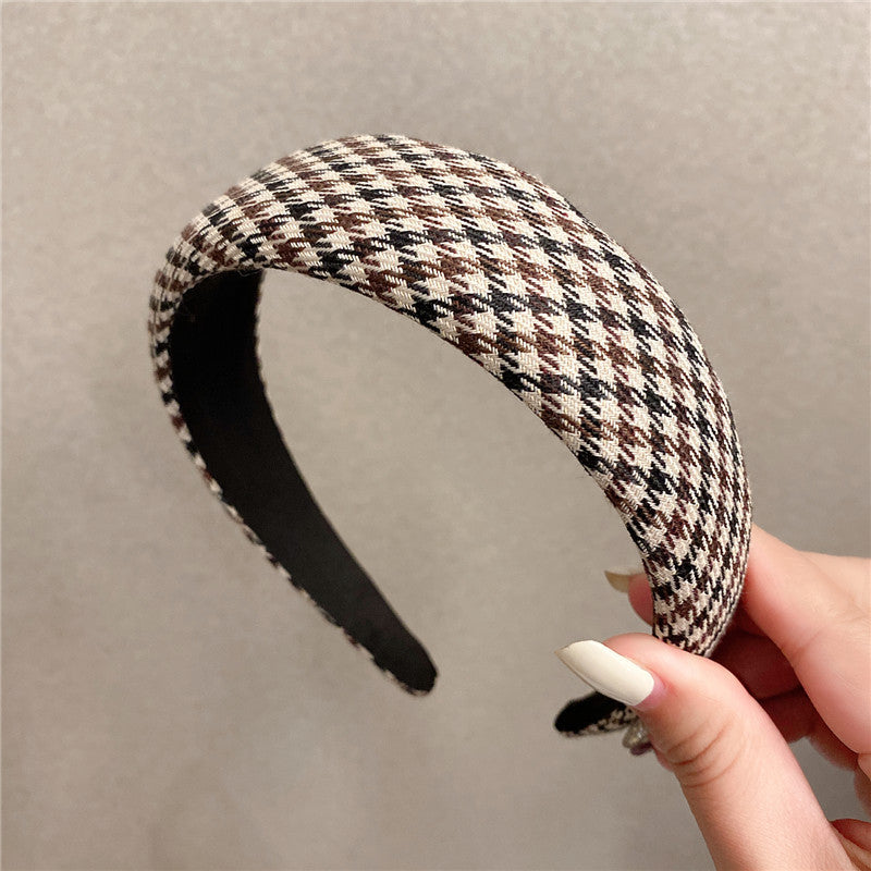Retro French plaid hairpin headband women four seasons simple wide edge face wash headgear Internet celebrity high skull top sponge headband