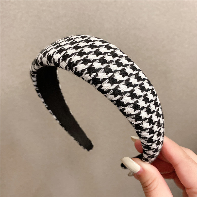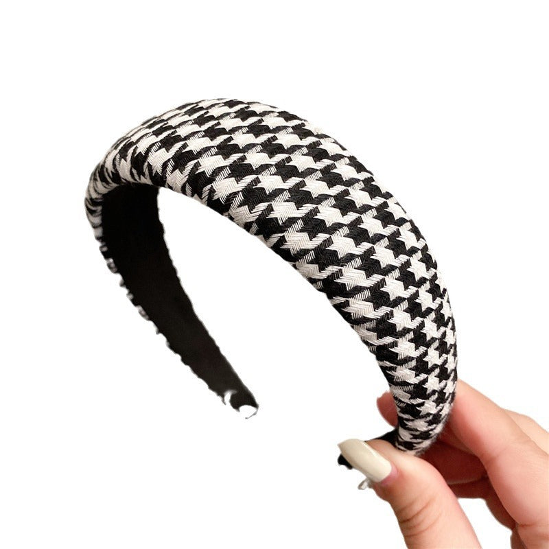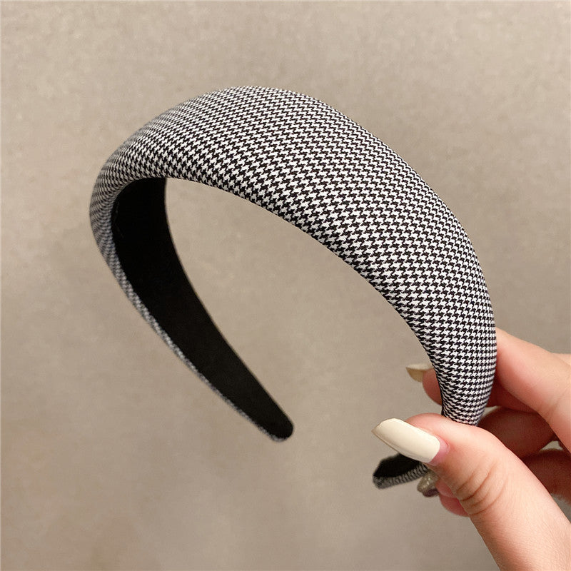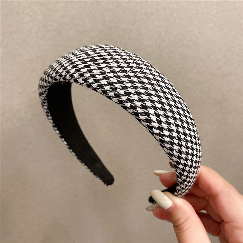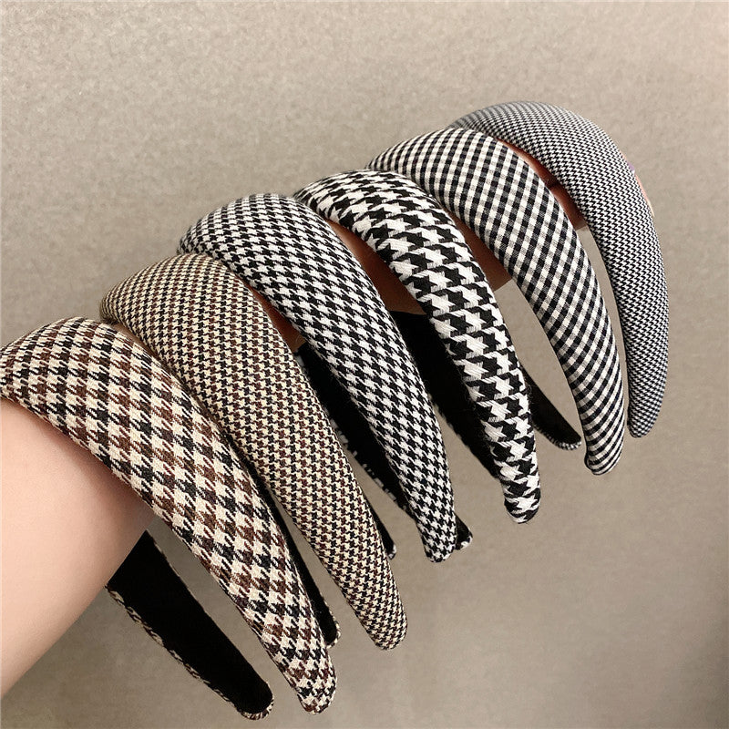 Retro French plaid hairpin headband women four seasons simple wide edge face wash headgear Internet celebrity high skull top sponge headband