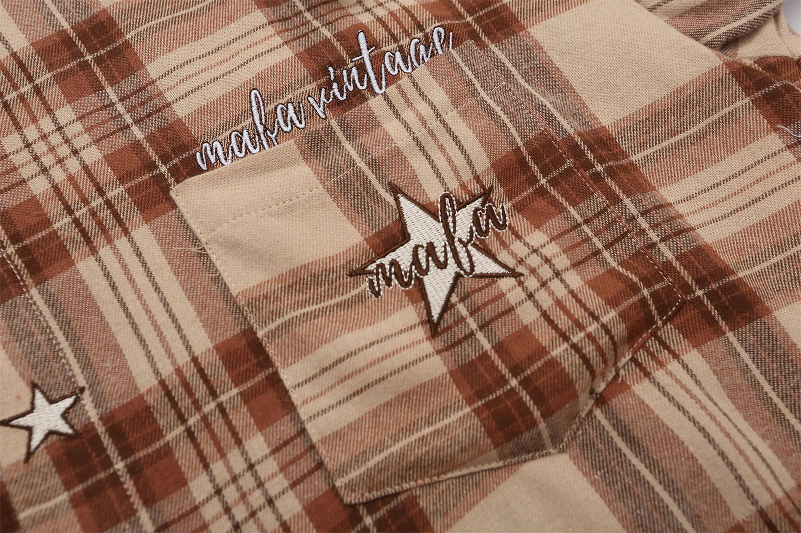 Retro niche design doll letter embroidered short-sleeved shirt men's summer loose casual couple shirt
