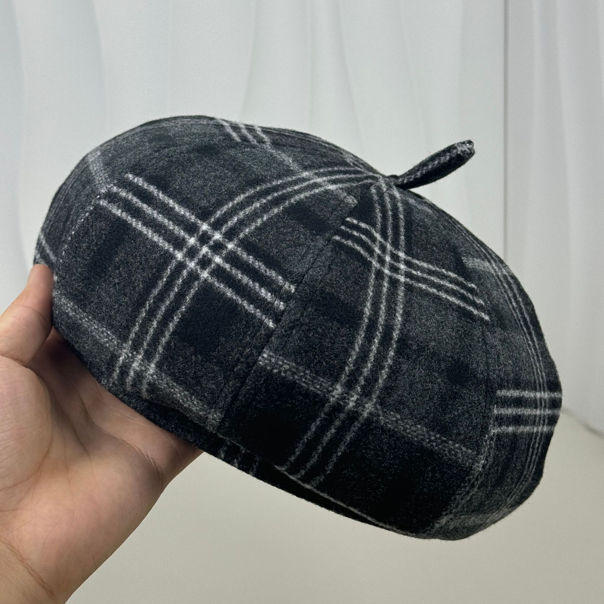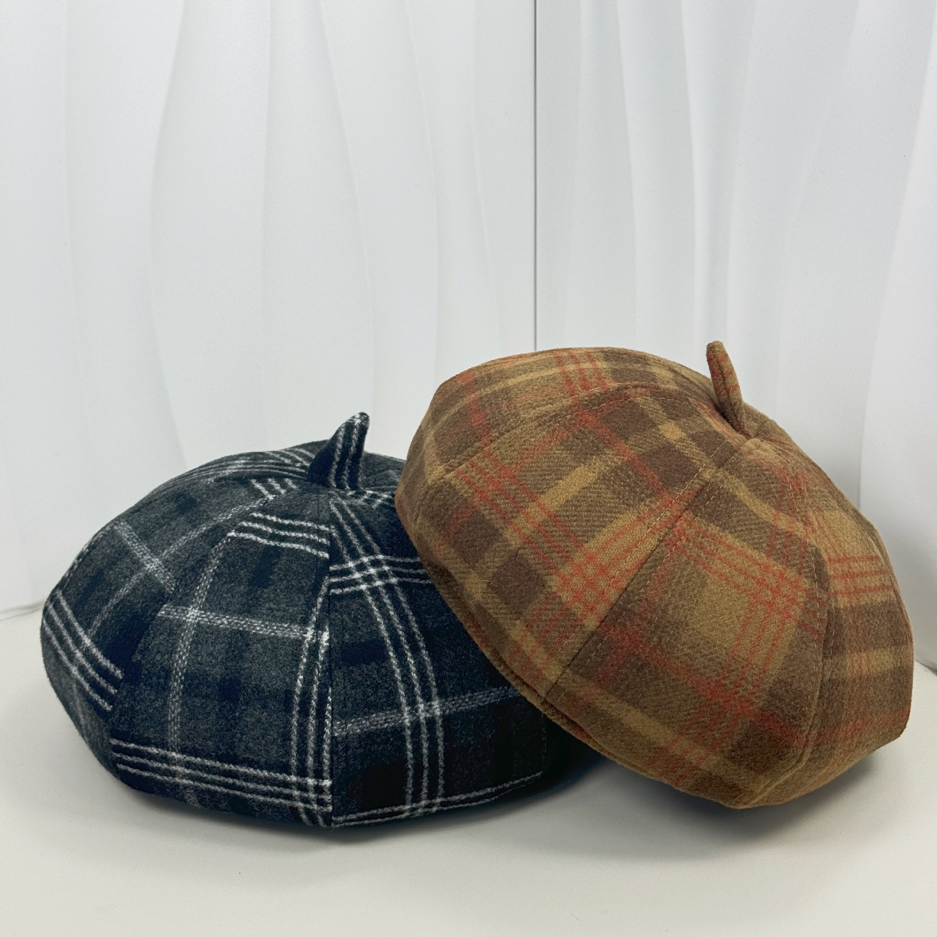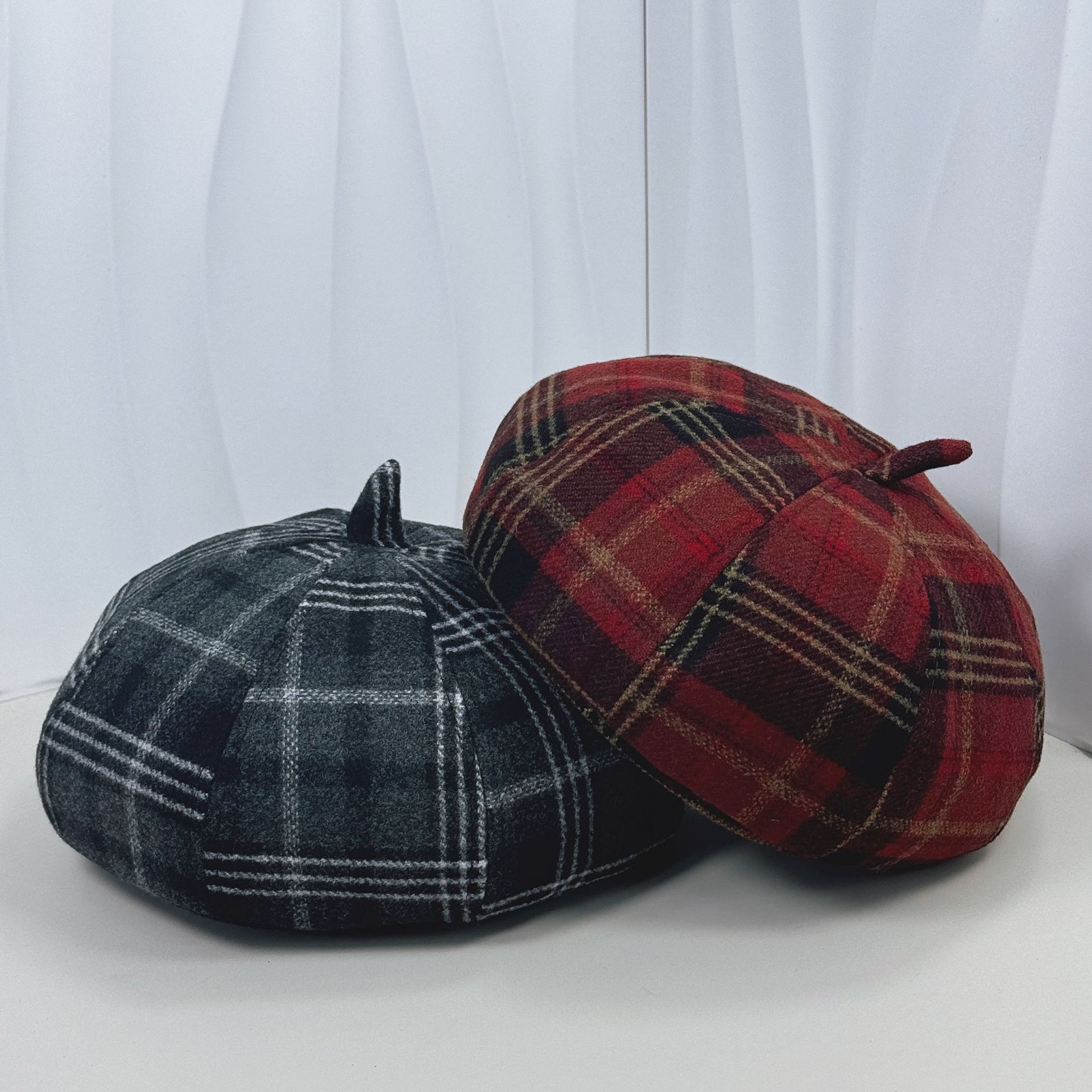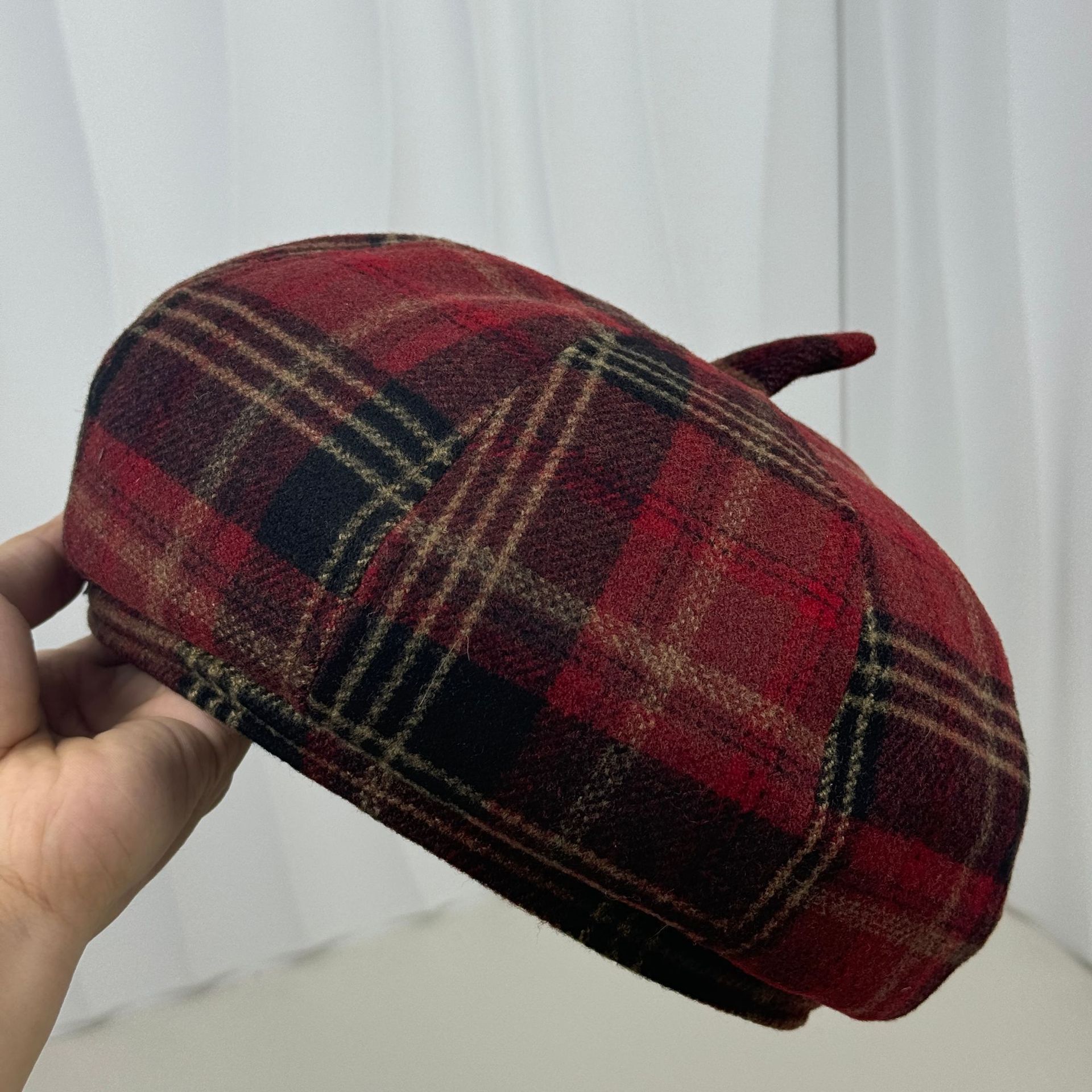 Retro plaid beret female versatile painter hat fashion autumn and winter red woolen plaid retro casual
