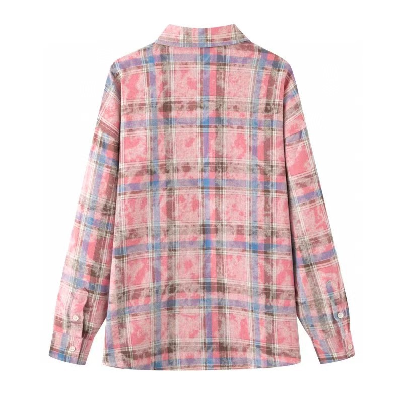 Spring New American Casual Retro Sweet Spice Girl Pink Plaid Shirt Top