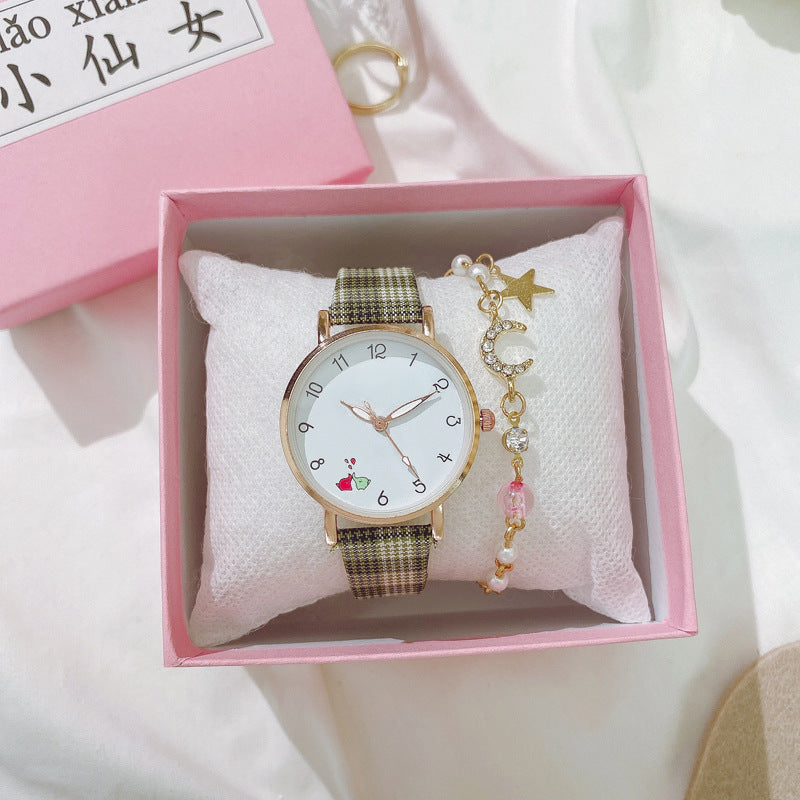 Temperament Girl Plaid Small Fresh Fashion Student Watch Academy Style Elephant Women Watch