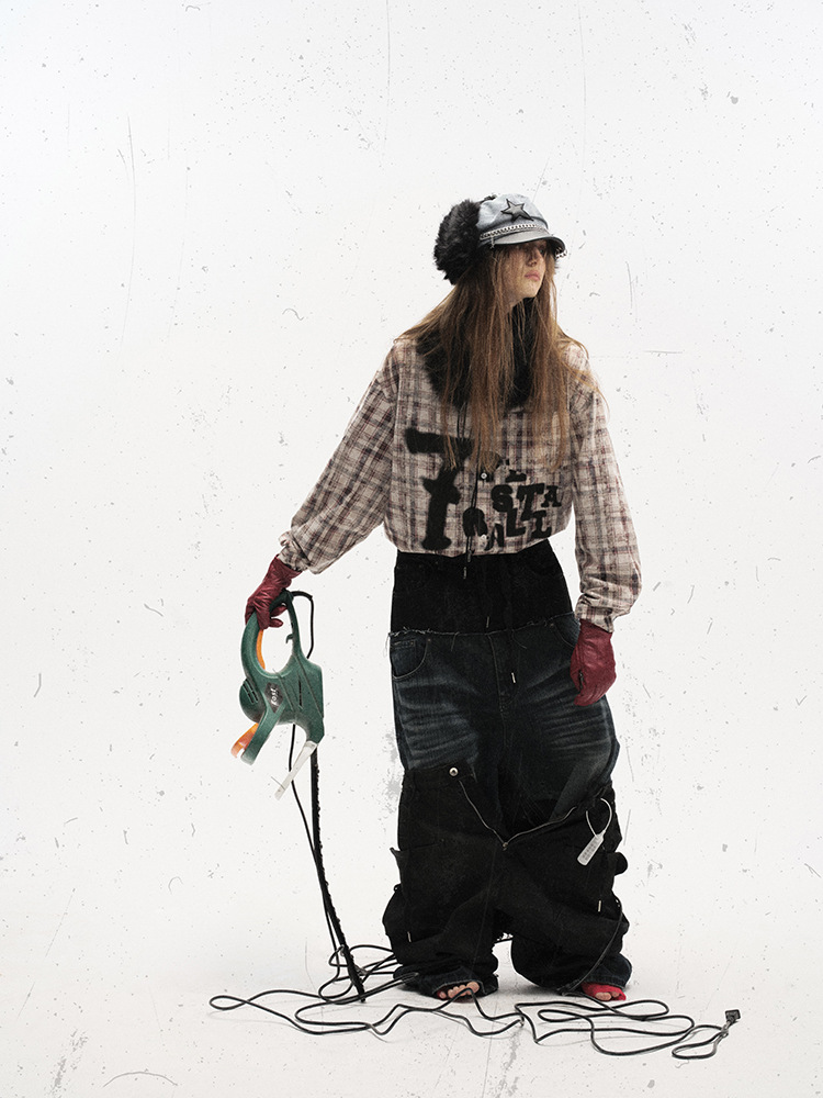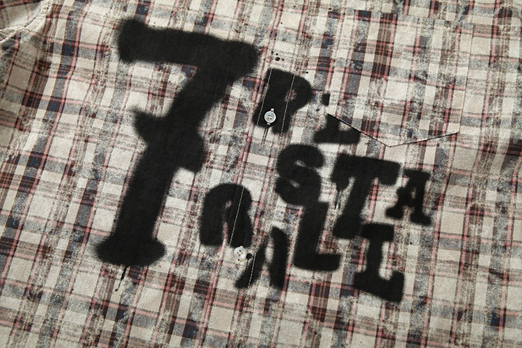 Tie-dye graffiti letter design plaid shirt men's and women's versatile long-sleeved shirt