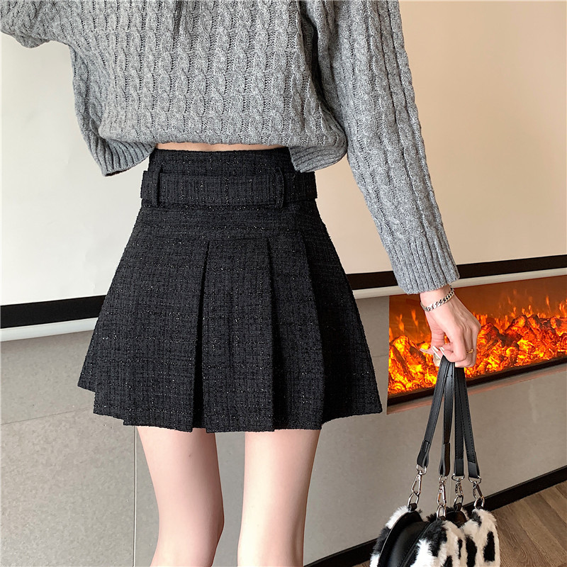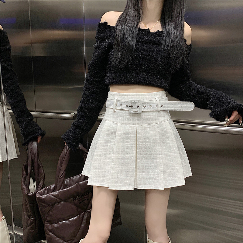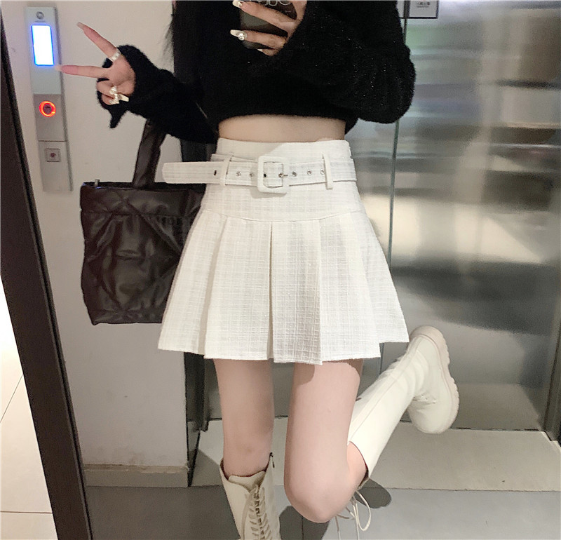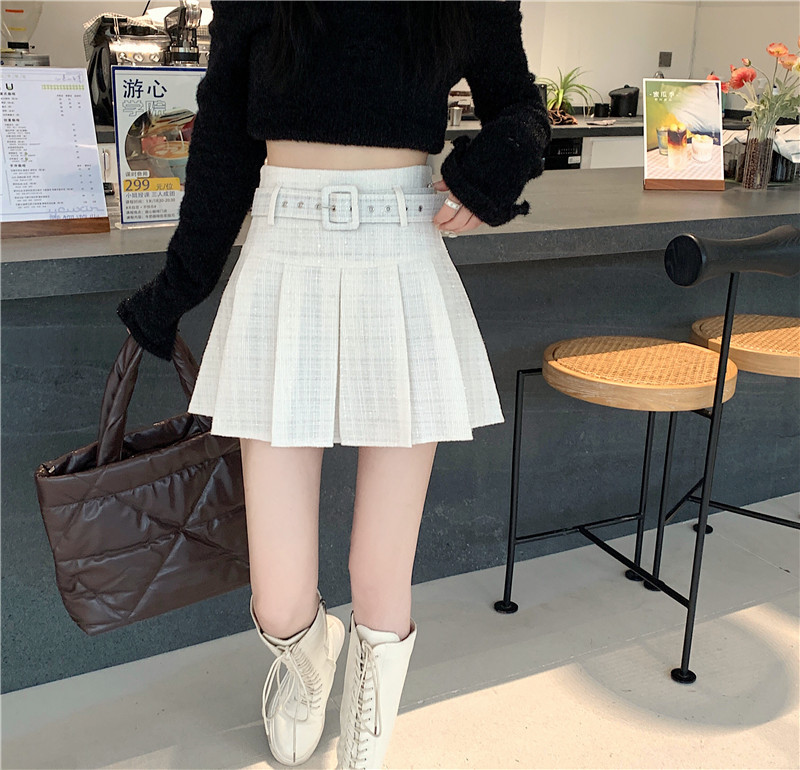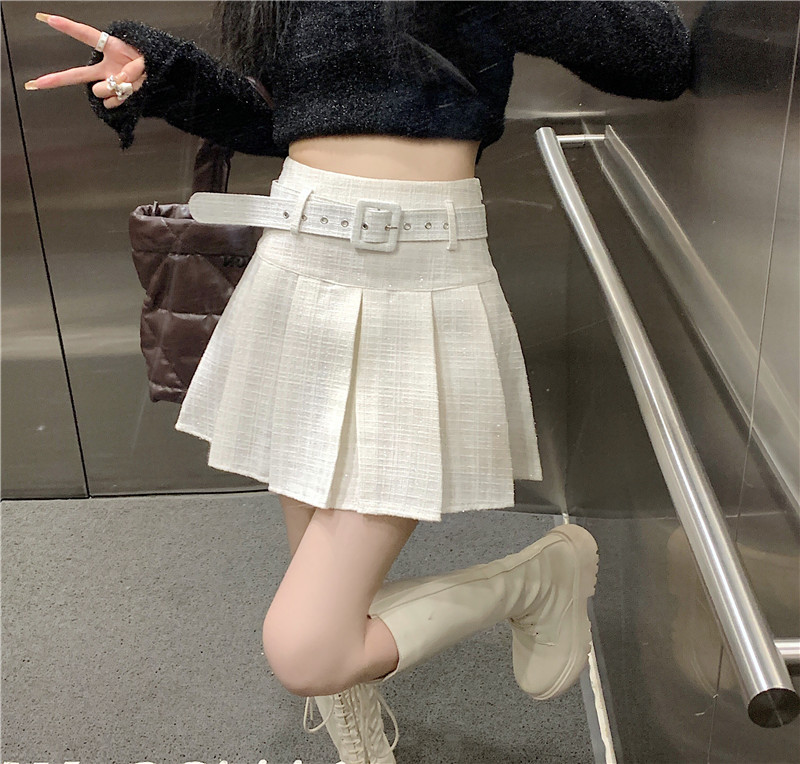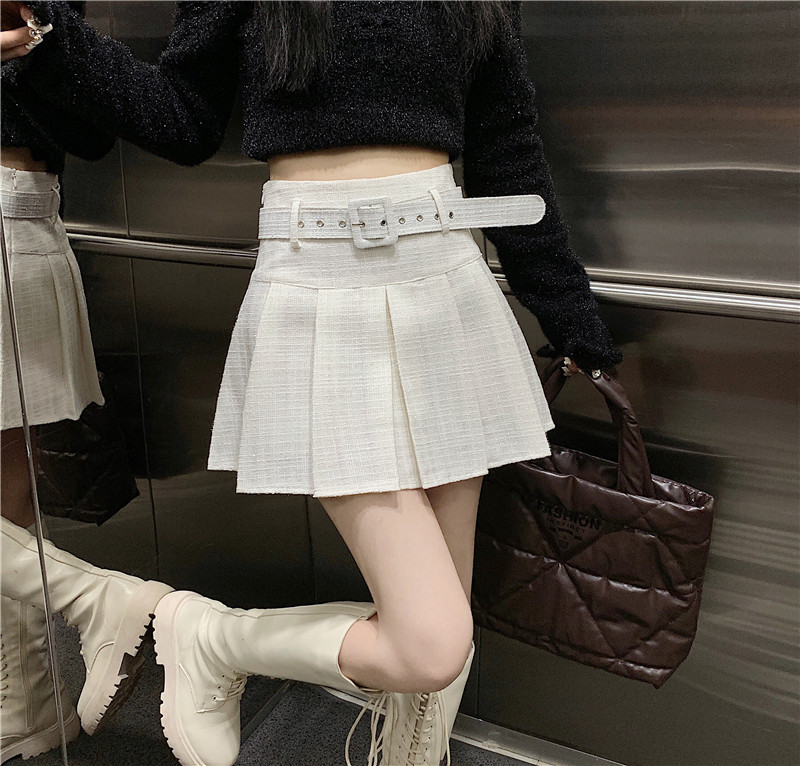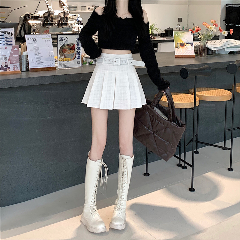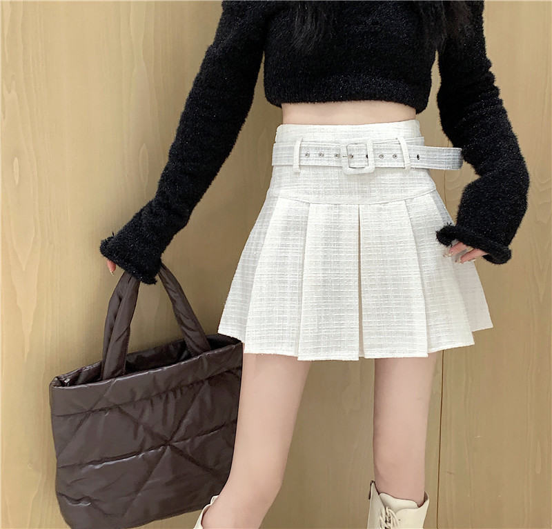 coarse woolen pleated skirt women autumn and winter A-word short skirt white skirt hip wrap