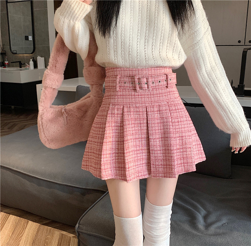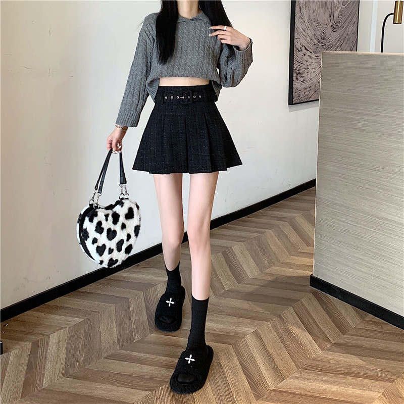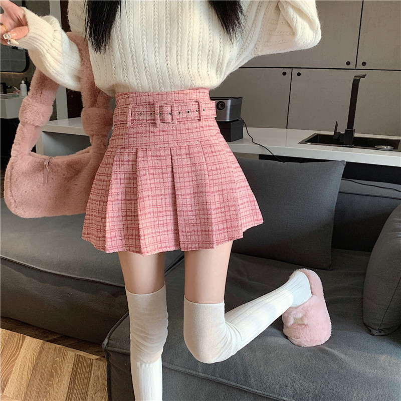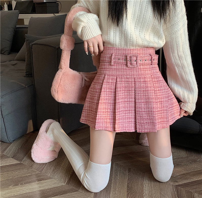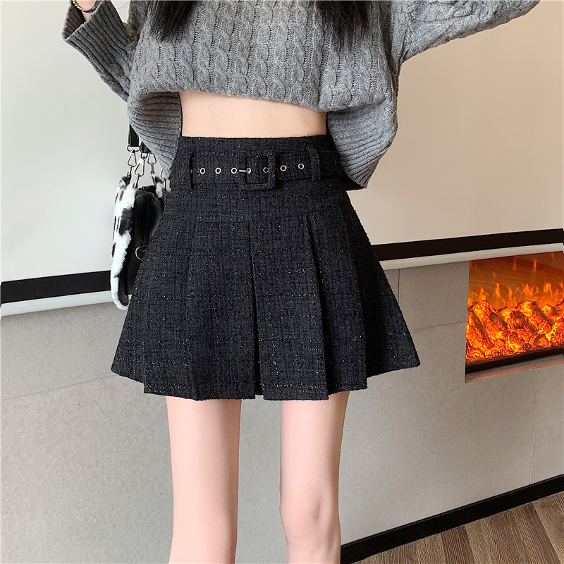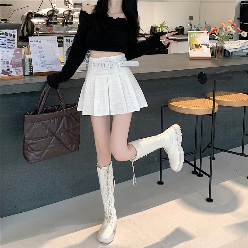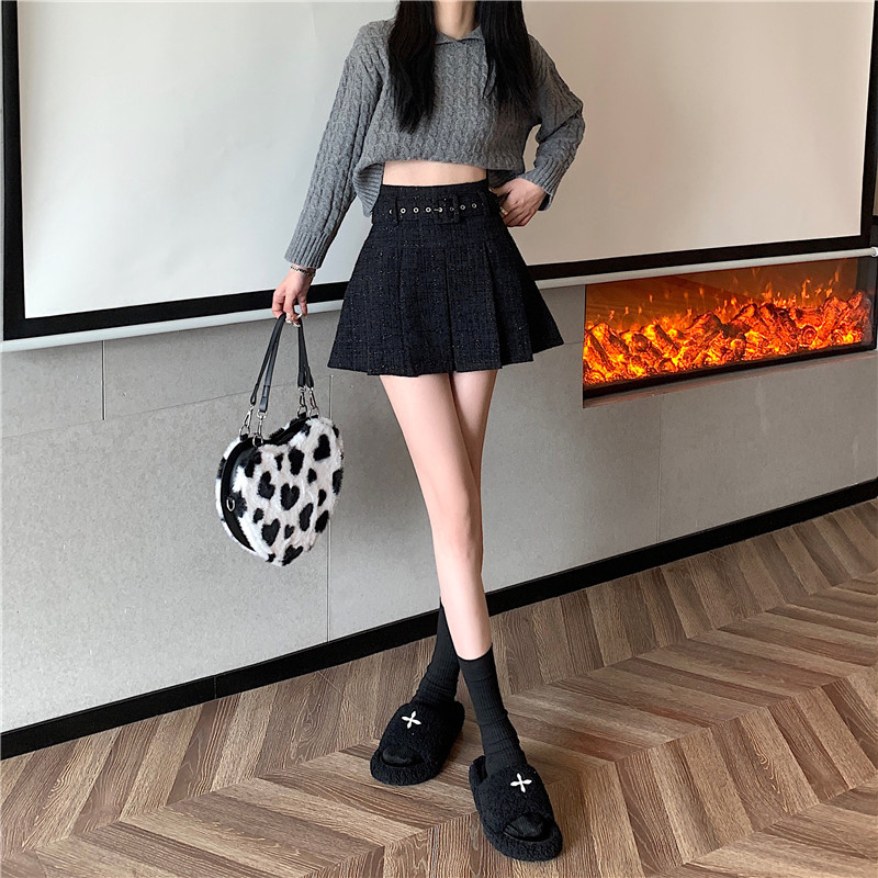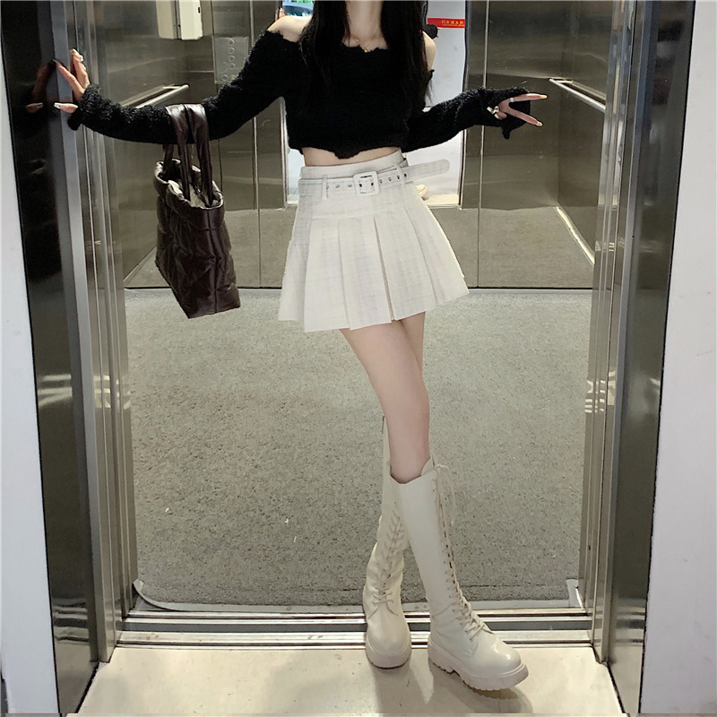 coarse woolen pleated skirt women autumn and winter A-word short skirt white skirt hip wrap