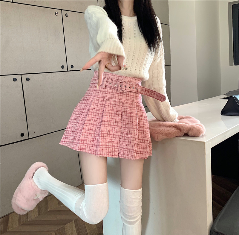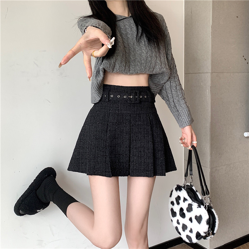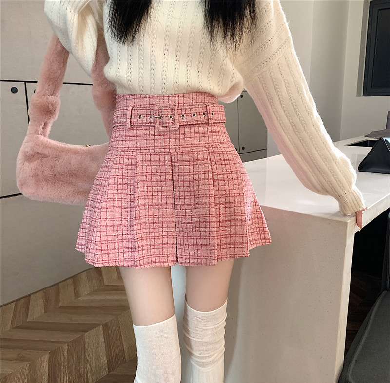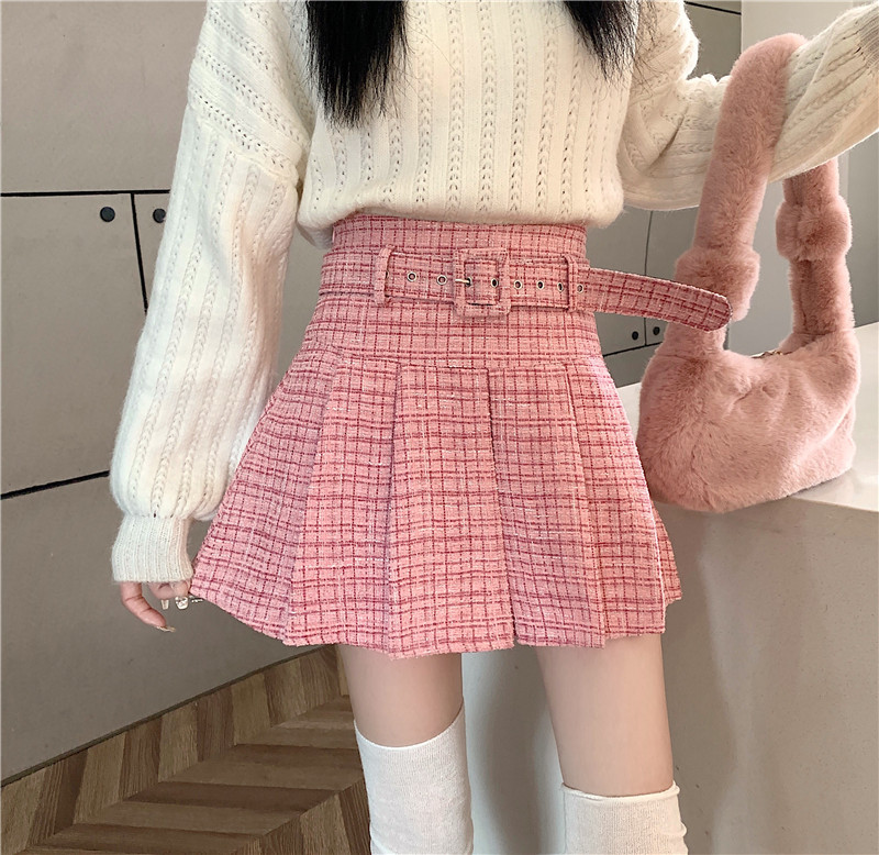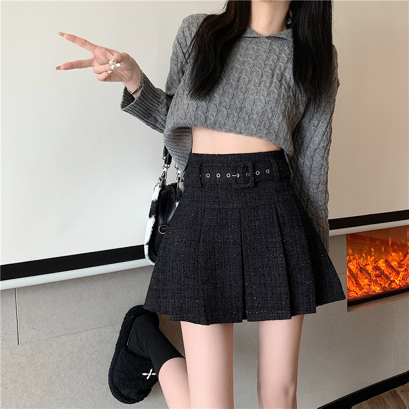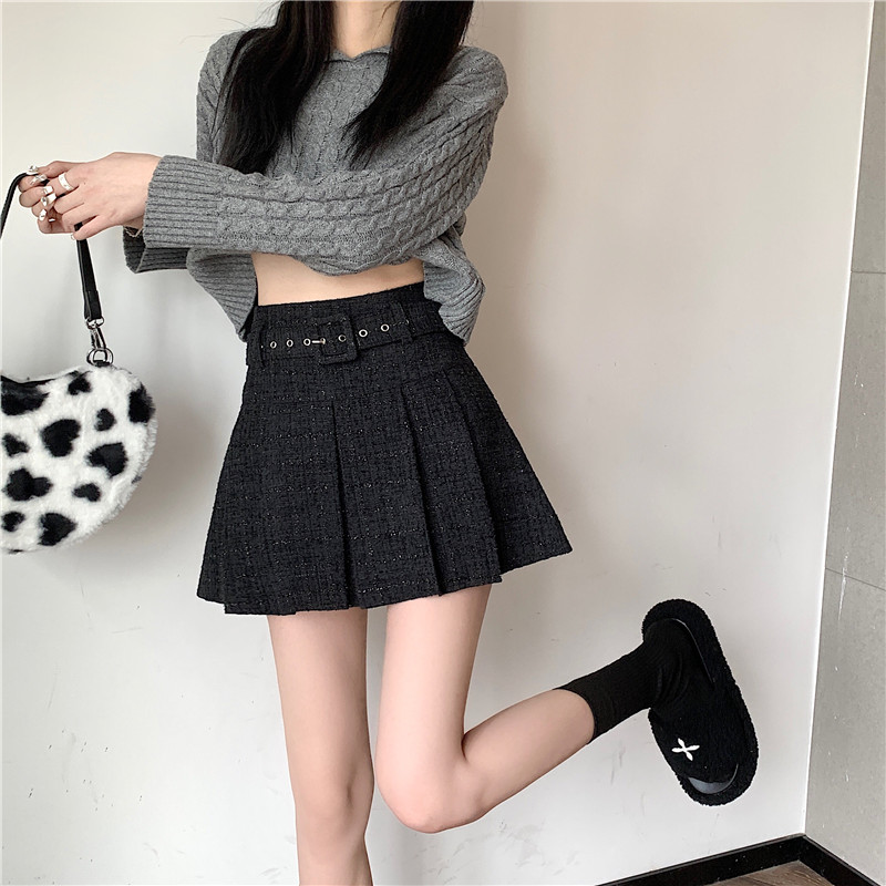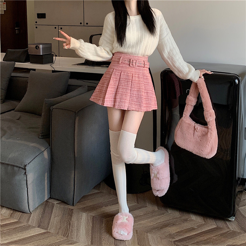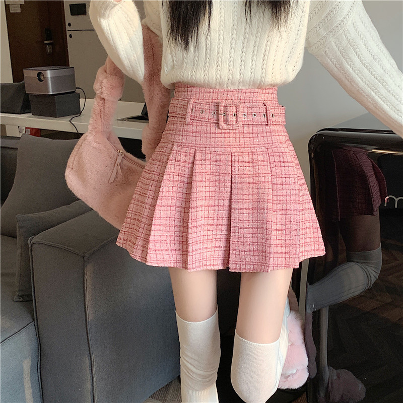 coarse woolen pleated skirt women autumn and winter A-word short skirt white skirt hip wrap